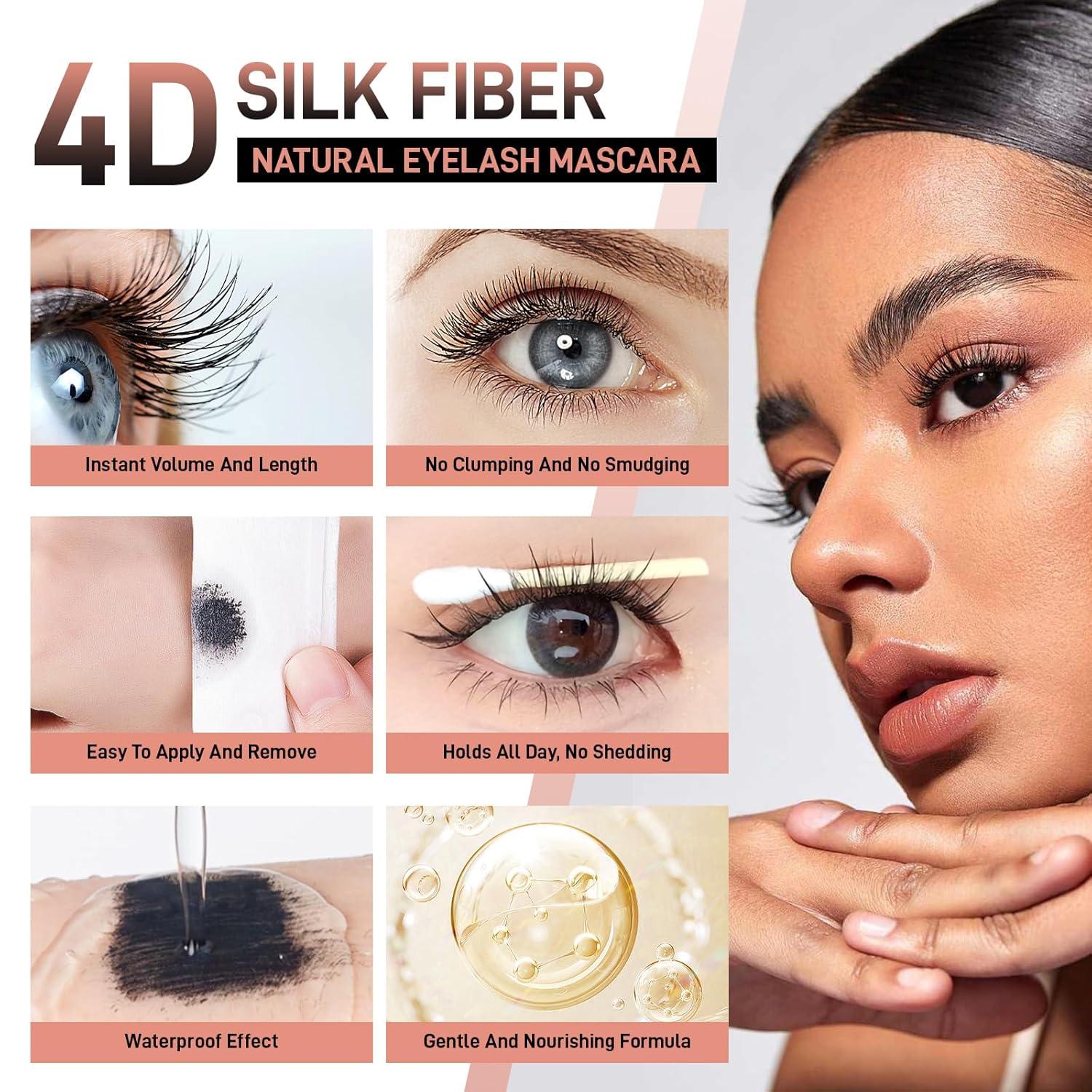 4D Silk Fiber Wimperntusche, Extra Lange Verlängerung Lashes Mascara