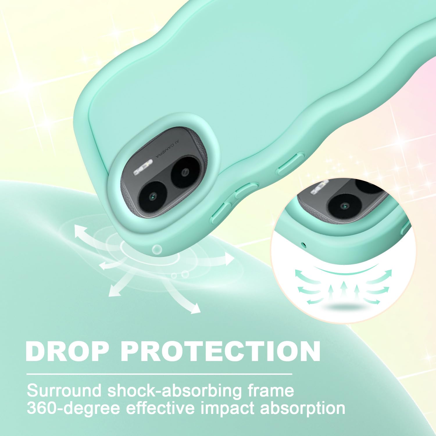 XINYEXIN Flüssiges Silikon Hülle Für Xiaomi Redmi A2 4G / Redmi A1 4G, Wellen Lockige Form Niedliche Weiche Stoßfestes Handy Schutzhülle - Grün