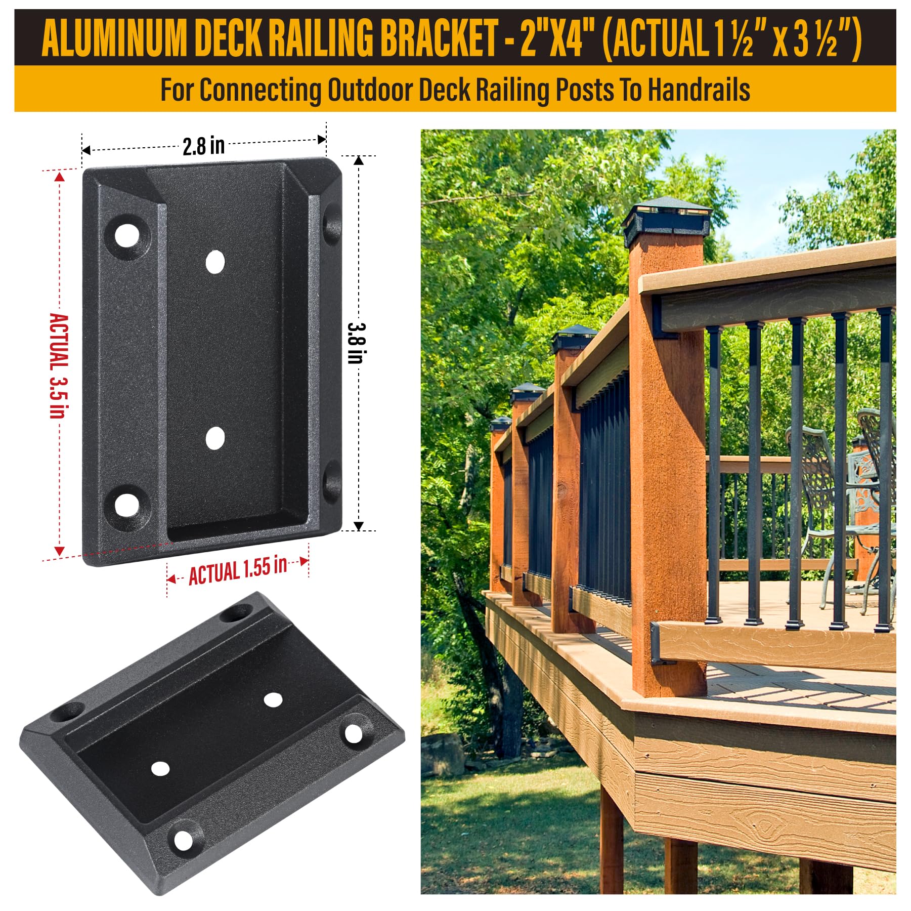 Epcee ADC-12 Aluminium-Deckgeländer-Halterung, Deckgeländerverbinder Für 5,1 X 10,2 Cm (tatsächlich 3,8 X 8,9 Cm) Holzdeck-Geländerpfosten Zu Handlaufverbindung, Schwarz, 12 Stück