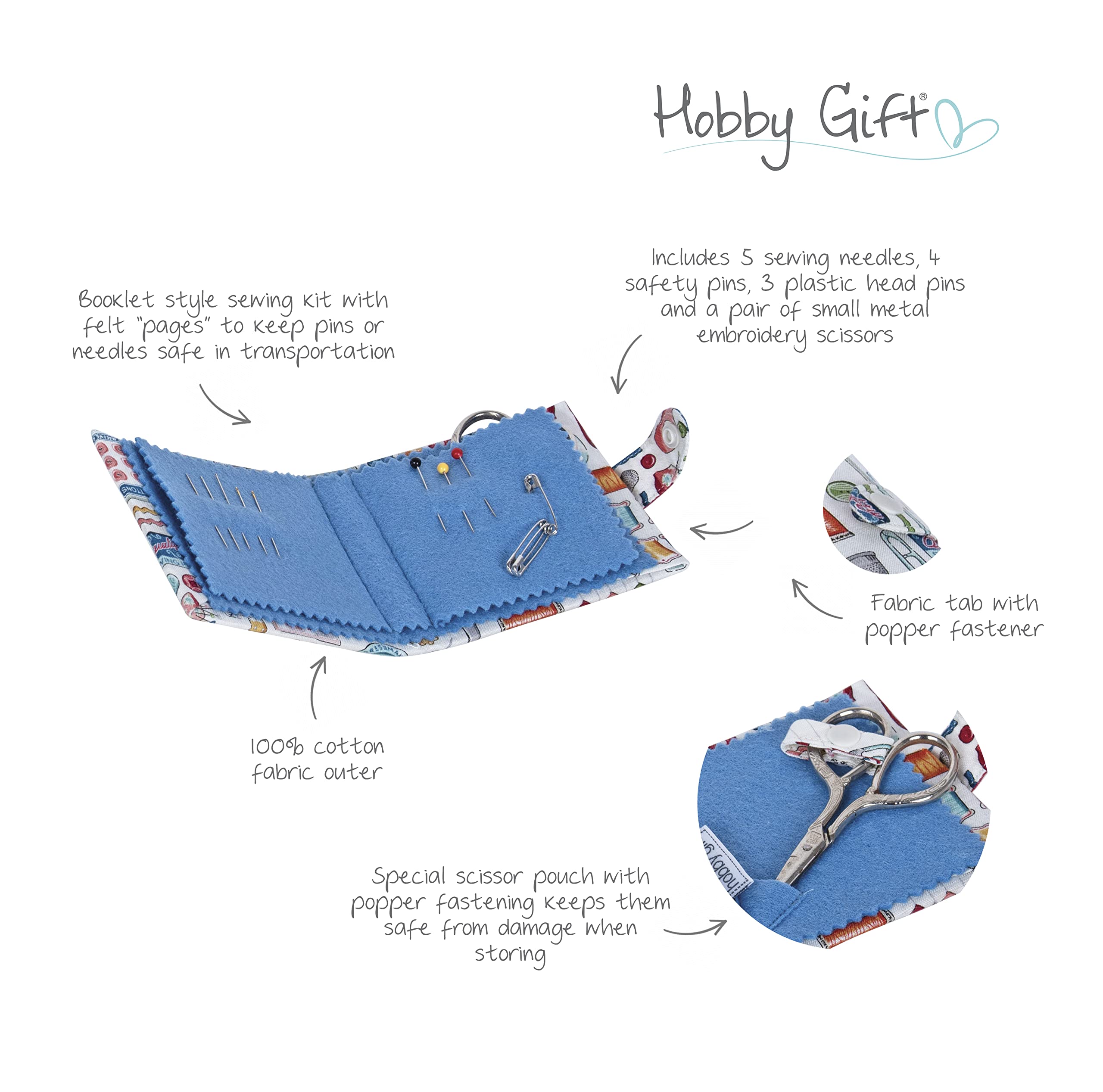 Hobby Gift Nadeletui – 5 Nähnadeln, 4 Sicherheitsnadeln, 3 Nadeln