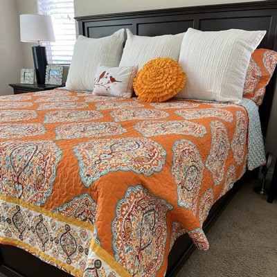 Lush Decor 5 Piece Harley Quilt Set, King, Tangerine