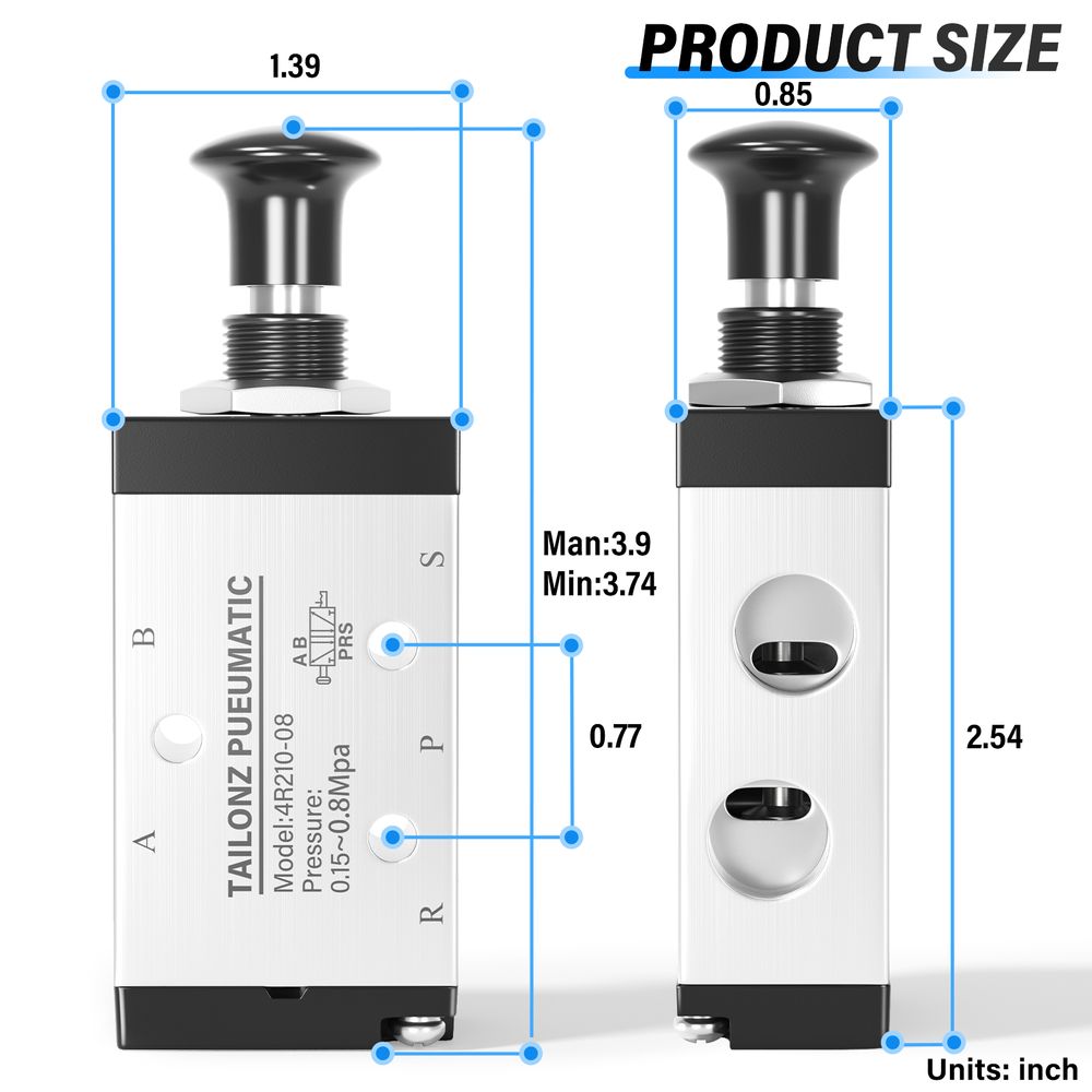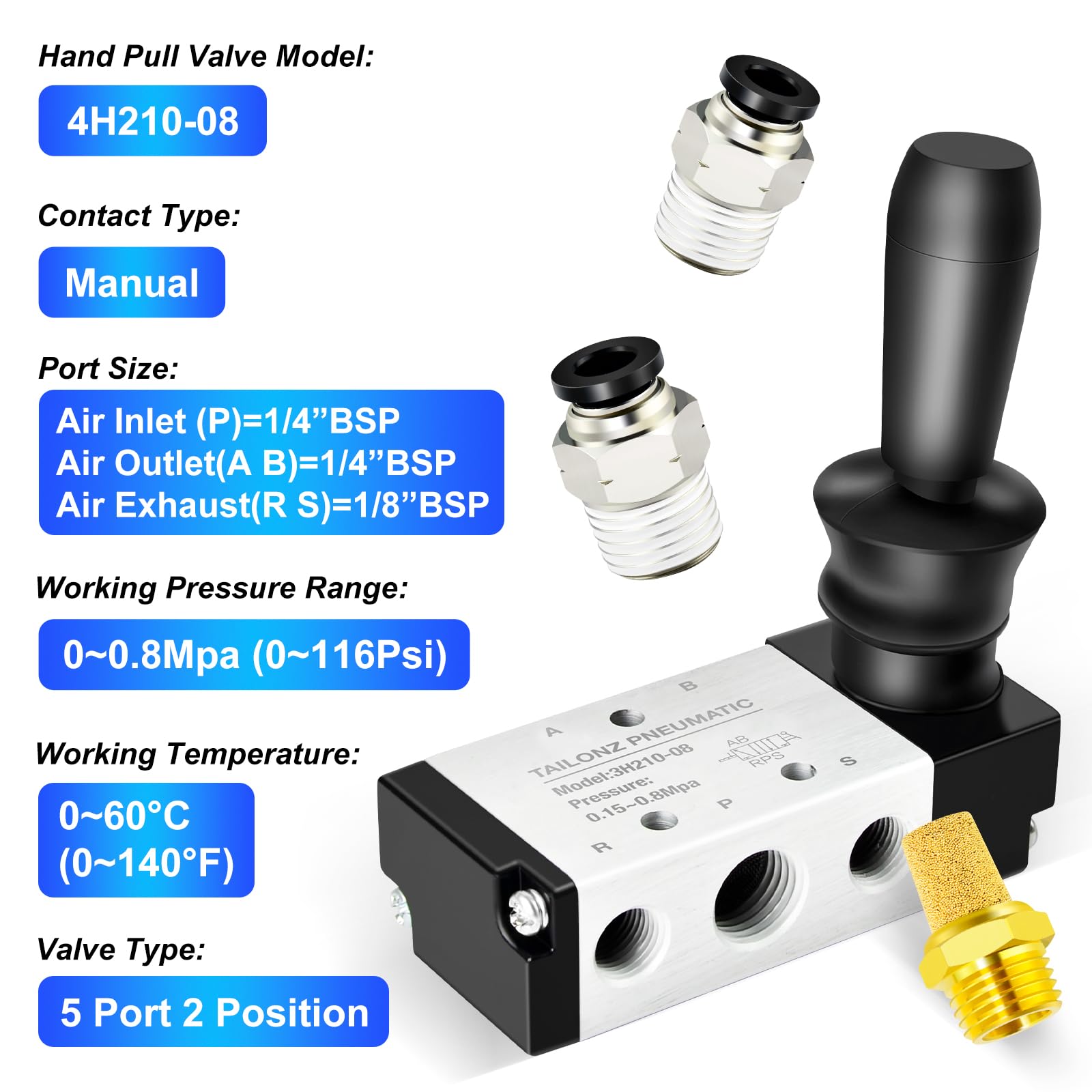 【Produktmerkmale】Steuert den Luftstrom an oder aus Produkteigenschaften: Modell: 4R210-08; Kontaktart: manuell Anschlussgröße: Lufteinlass (P) = 1/4 Zoll NPT Luftauslass (A B) = 1/4 Zoll NPT Luftauslass (R S) = 1/8 Zoll NPT., Gesamtgröße (ca. ④ Das manuelle Ventil mit fünf Anschlüssen und zwei Positionen verfügt über eine Federstahlkugelpositionierung, die reaktionsschnell und einfach zu schalten ist. Arbeitsdruckbereich: 0,15–0,8 MPa / 1,5–8 kgf/cm²., Ventiltyp: 5-Wege-2-Positionen. ③ Zur Steuerung von Piloten oder Membranen größerer Ventile oder kleiner Zylinder oder jedes Drucksystem, das alternativ unter Druck steht und erschöpft ist. 【Armaturen】Wir bieten passende Armaturen, Sie können direkt an Ihr 6 mm Rohr anschließen ② Das innere Loch wird durch ein spezielles Verfahren verarbeitet, mit geringem Reibungswiderstand und langer Lebensdauer. Pneumatisches Push Pull Ventil 4R210 08 5 Wege 2 Positionen 1/4 Zoll BSPT mit An Magnetventil Adblue SRMAN 4H210 08 NPT 5 Wege 3 Positionen Handhebelventil Pneumatisches Magnetventil Steuerung Pneumatik Ventil Bitte achten Sie auf übermäßige Kraft- und Kontrollpositionsfehler, die durch Fehler verursacht werden. Anzahl Positionen: 5 Port 3 Position. POFET 5 Way 2 Position Pneumatic Solenoid Valve, 4R210-08 Manual ④ The manual valve with five ports and two positions features spring steel ball positioning, which is responsive and easy to switch. Please pay attention to excessive force and control position errors caused by errors