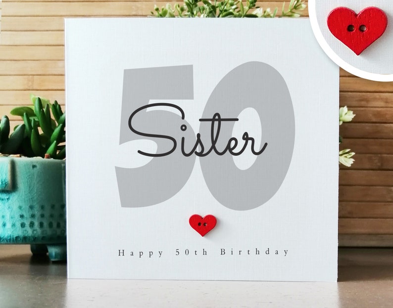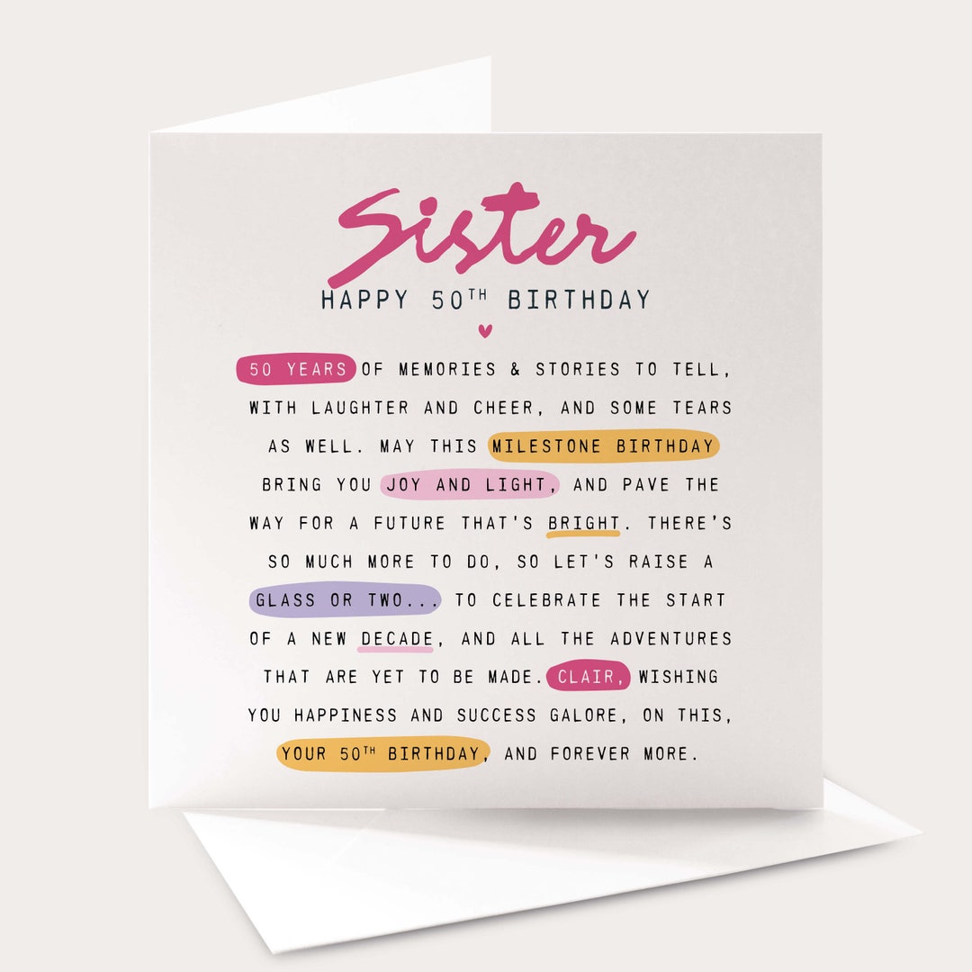 SCHWESTER 50. 50 Gin Glas & Schmetterlinge Design Happy Birthday Karte