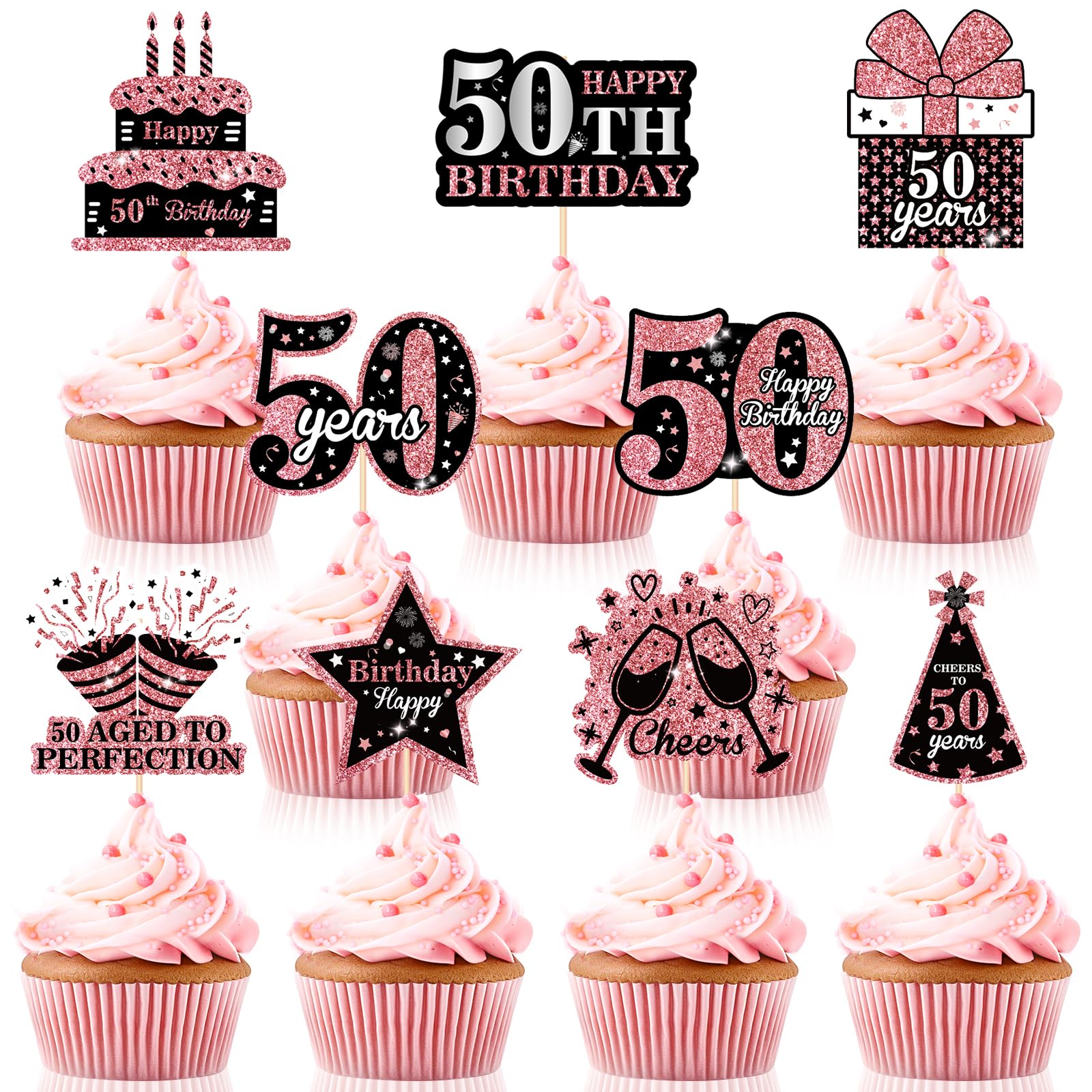 Round Cupcake Toppers | 50 And Fabulous Birthday | Cheers To 50 Years | 2.5 Inches | Black White Rose Gold | Digital INSTANT DOWNLOAD - Österreich