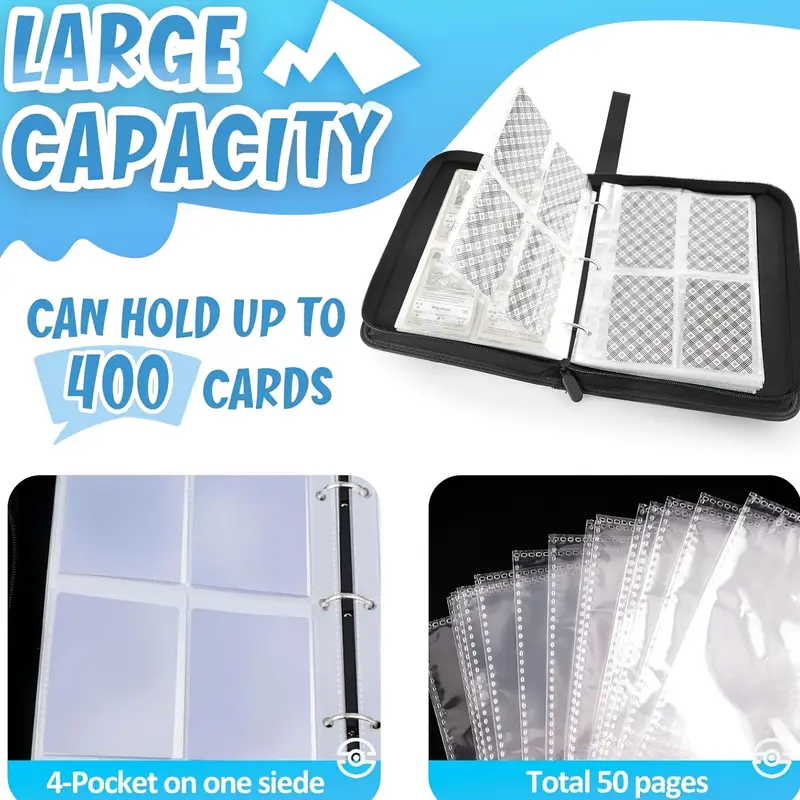 Sammelalbum Kompatibel Mit Karten,400 Karten Mit 50 Herausnehmbaren Hüllen,Sammelkarten Album Karten Halter Ordner Geschenk Für Kartensammler,Sammelkartenalben (Schwarz