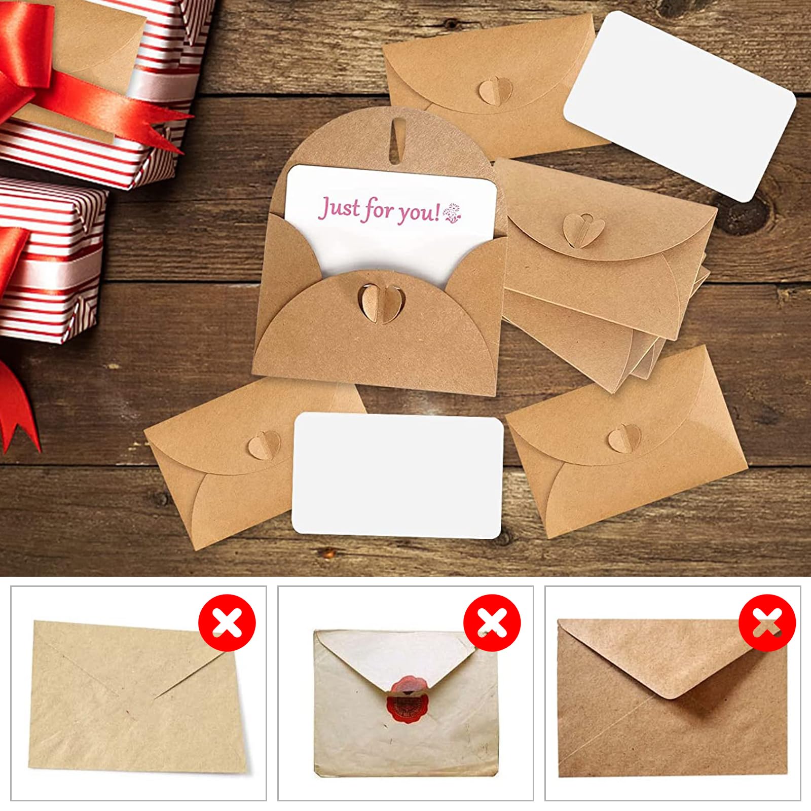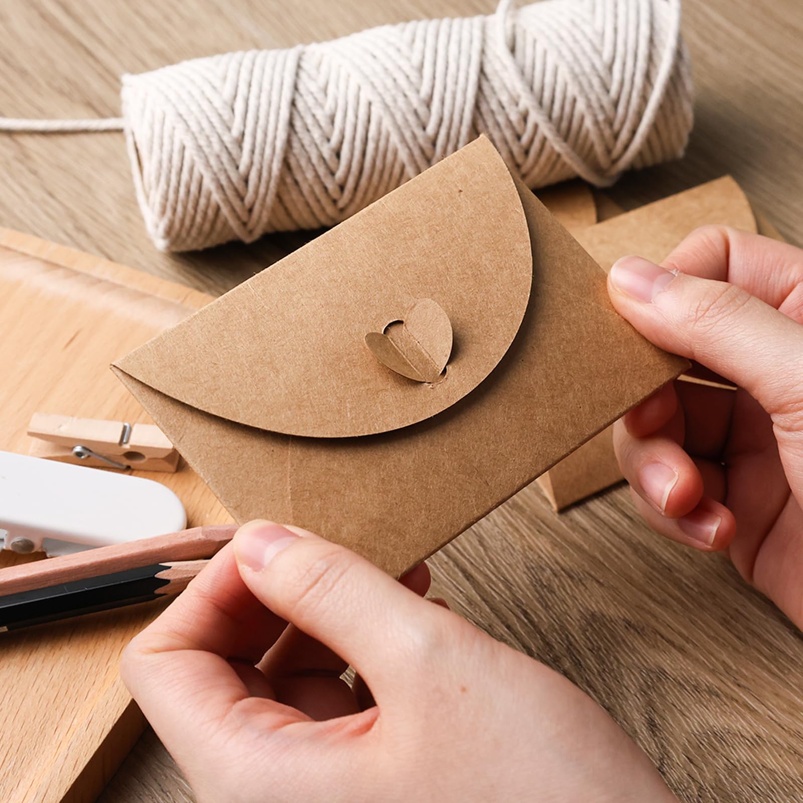 50 Stück Kraftpapier Briefumschläge, Heart-shaped, Postkarten Umschläge