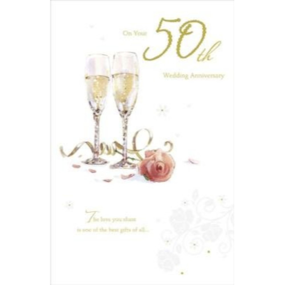 Golden 50th Anniversary Luxury Champagne Greeting Card