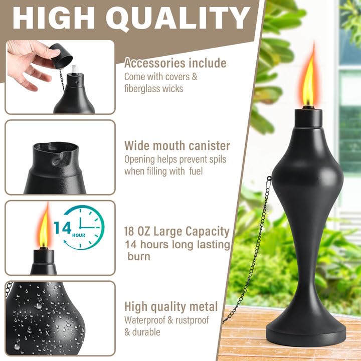 FAN-Torches 4 Pack Metal Table Torches, 530ml Citronella Torches Outdoor Easy Fill Citronella Flame Light Torch With Wicks And Covers Patio Garden