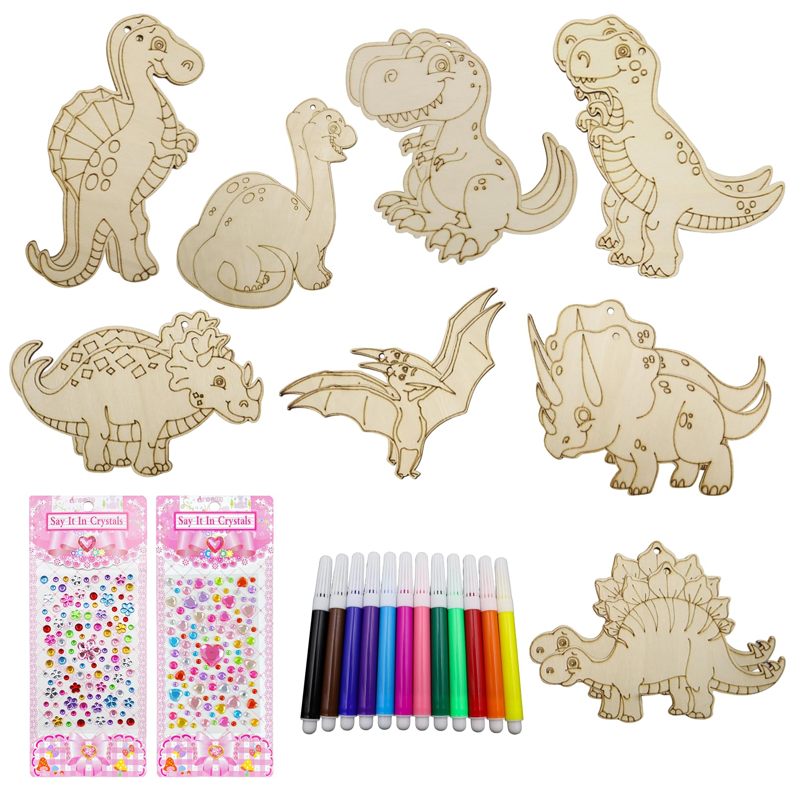 Dinosaurier Holz Bastelset 54 Pcs, Dinosaurier Bastelset Kindergeburtstag Farbstifte Geburtstag