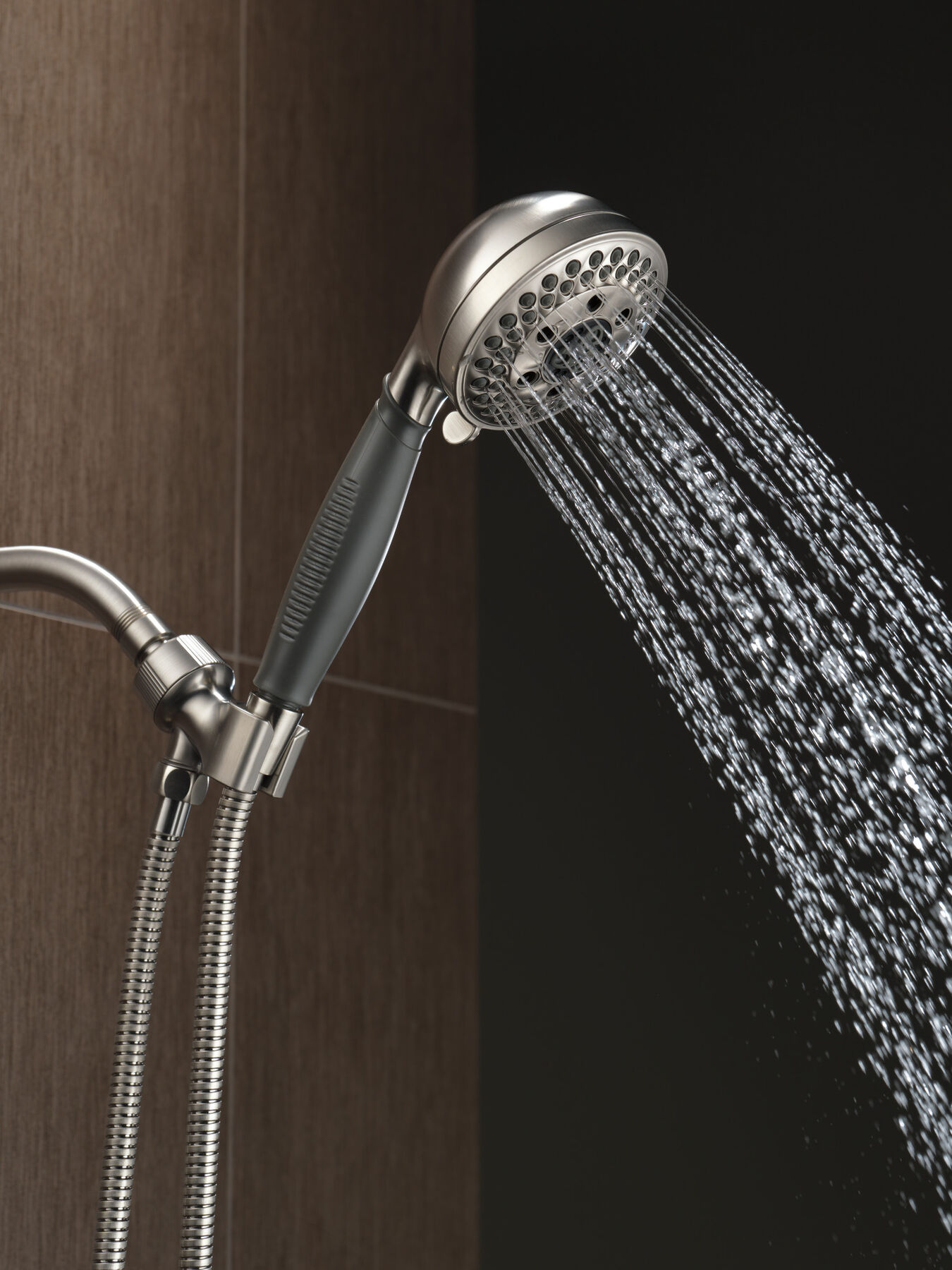 Waschen Sie den Tag mit dieser multifunktionalen Handbrause Sprüheinstellungen umfassen: Ganzkörpermassage, schnelle Massage, Vollspray mit Massage, Shampoo-Spülung, weiches Drench , Inklusive 152,4 cm Schlauch Ideal zum Duschen für sich selbst oder Ihre Lieben und Haustiere, sowie um Ihre Dusche und Badewanne sauber zu halten. Maße zusammengebaut: 20,3 cm H x 21,3 cm T x 8,9 cm B Spray settings include: full body, fast massage, full spray with massage, shampoo rinsing, soft Drench. 5-Spray/massaging hand shower. Setting Type Pause, Massage, Full DELTA FAUCET 54436-PK Premium 5-Setting Hand Shower, Chrome