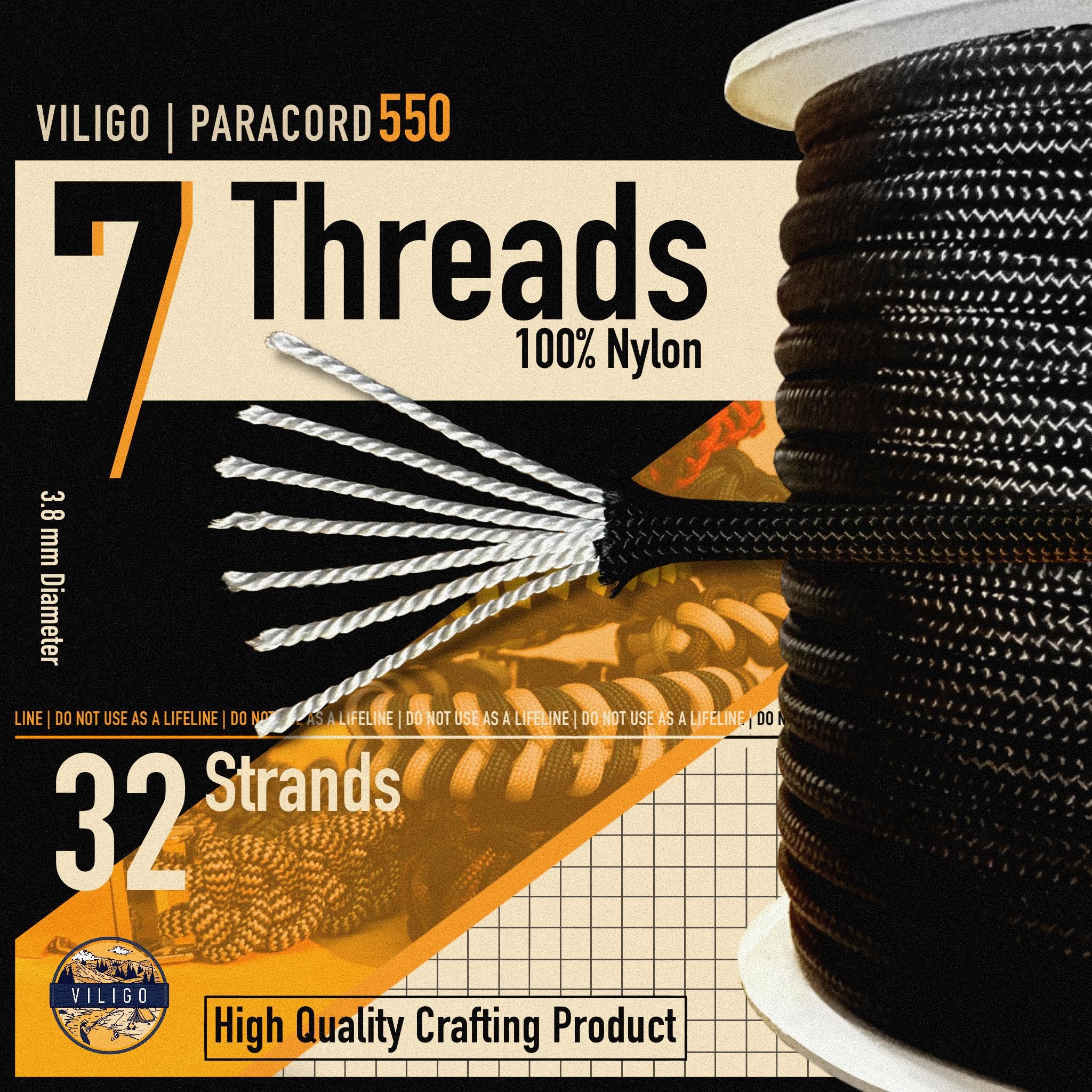 VILIGO Paracord 550 - Type III (3.8mm) - Nylon Braid 7 Internal