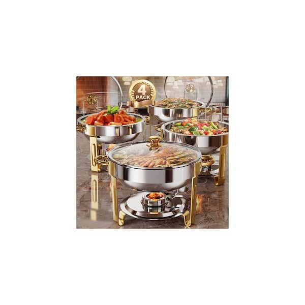 Chafing Dishes For Buffet, 4 Pack 5QT Round Stainless Steel Chafing Dish Set For Home Parties, Christmas Gatherings, Catering Events, Complete Buffet Warmer Set (Rose Gold