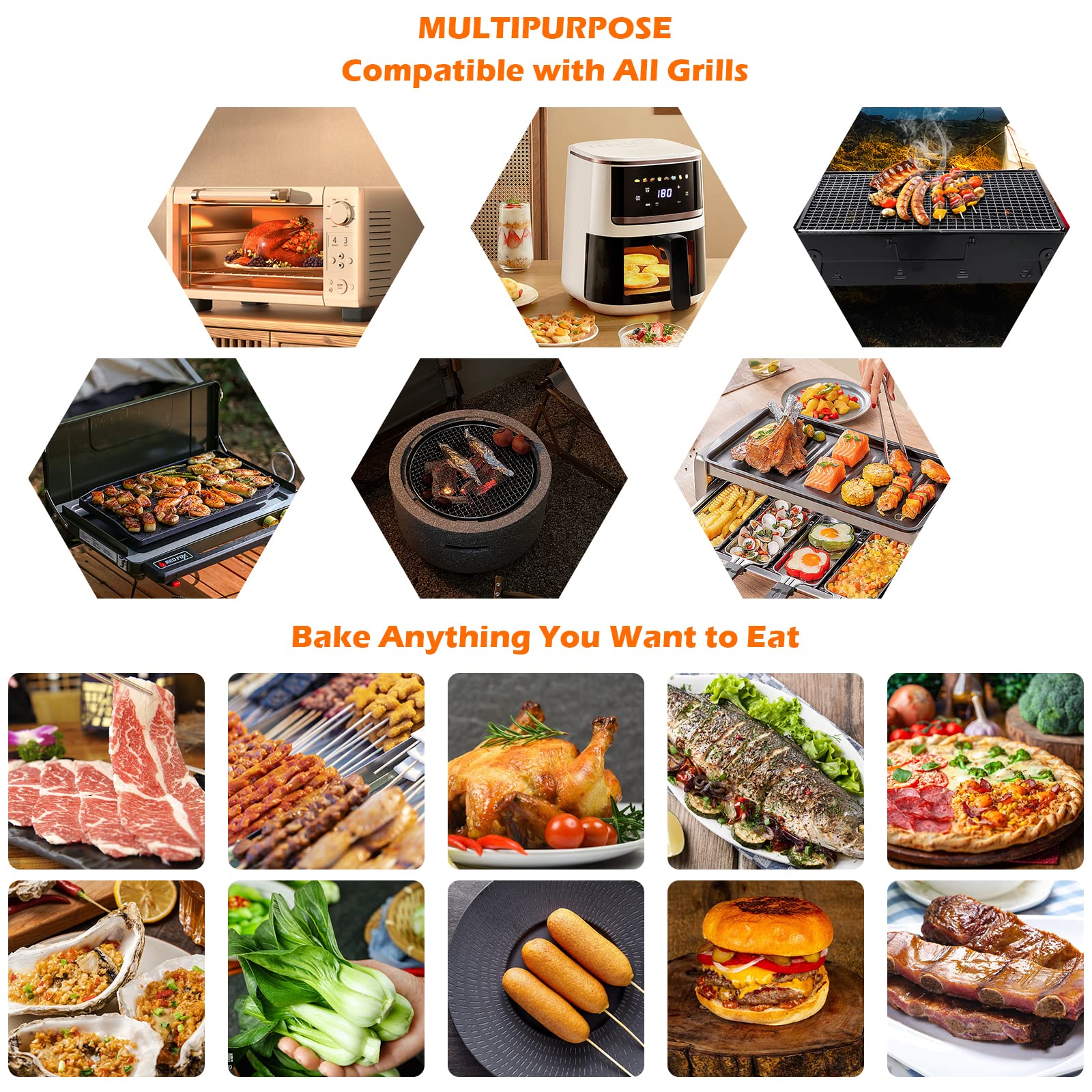 CAMPORA Backmatte 5x Grllmatte BBQ Grllmatten Grll Matte 【Breite Anwendungen】Unsere Grillmatten eignen sich für den Einsatz in mehreren Szenarien, egal ob für das Grillen im Freien, Ofenbacken oder für die Heimpfanne und andere Brat- und Grillgeräte können verwendet werden, um Ihnen eine breitere Palette von Kochoptionen zu bieten Egal, ob Sie im Freien grillen, im Ofen backen oder zu Hause eine Bratpfanne verwenden, es bietet Ihnen eine breitere Palette von Kochmöglichkeiten für eine vielseitigere Nutzung. 【Grillmatten zum Grillen】Unsere Grillmatten sind ideal für Grillbegeisterte, sie erleichtern das Grillen von Lebensmitteln ohne zusätzliches Fett, verhindern das Anhaften von Lebensmitteln und halten sie intakt, perfekt zum Grillen von Fisch, Gemüse, Fleisch und mehr Paket enthalten: Kupfer-Grillmatten, 5 Stück, 40 x 33 cm, 2 mm dick Grillmatten für Outdoor-Grill: Unsere Grillmatten bestehen aus PTFE für hohe Temperaturbeständigkeit und sind PFOA- und silikonfrei für die Verwendung mit einer Vielzahl von Grillgeräten. 【Kupfer Grillmatten für Outdoor Grill】Unsere Grillmatten bestehen aus hochhitzebeständigem PTFE, ohne PFOA und Silikon, geeignet für alle Arten von Grills. Bei Gebrauch sollte die Temperatur 126., 7 °C für mehr als 30 Minuten und bis zu 204., 4 °C für kürzere Zeiträume nicht überschreiten. Wiederverwendbar und leicht zu reinigen: Teflon-Antihaft-Grillmatte ist wiederverwendbar, einfach mit Wasser abspülen oder nach Gebrauch sanft abwischen, spülmaschinenfest, geeignet für vielbeschäftigte Familien oder häufige Grillbegeisterte, wodurch der Ärger der Reinigung des Grills reduziert wird SPGOOD BBQ Grillmatte,5er Set Antihaft Teflon Grillmatte Für Gasgrill BBQ Grillmatte,5er Set Antihaft Teflon Grillmatten Gasgrill Grill Matten 【Grillzubehör】 Das Paket enthält ein Set von 5 Kupfer-Grillmatten mit den Maßen 40 x 33 cm, 2 mm dick, die dünn genug ist, um Grillspuren und Aromen zu erhalten, und kann auch auf die gewünschte Größe zugeschnitten werden, um Ihren Kochbedürfnissen gerecht zu werden