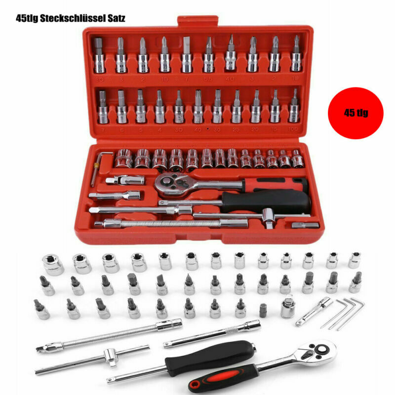 [Breite Anwendungen] Ratschenset für die Reparatur von Autos, Motorrädern, Fahrrädern oder Reparaturen zu Hause, geeignet für Heimwerker, Mechaniker, Bauarbeiter, Mechaniker. Drehgriff: 15,2 cm, 1 x Bit-Adapter Perfekt für Profis oder Heimwerker., Ein unverzichtbares Multifunktionswerkzeugset. 13tlg Steckschlüssel Satz 6,35mm (1/4") mit Außen Vielzahn Profil aus Chrom, Stecknüsse im Knarrenkasten, hochwertige Steckschlüssel für Werkstatt Universalgelenk, 1 Stück Verlängerungsstange: 5,1 cm und 10,2 cm, 1 Stück. Schlüsselschlüssel: 1,5, 2, 2,5 mm, 1 Stück, 1/4 Zoll Dr. Dieser Steckschlüsselsatz ist für Profis oder ernsthafte Heimwerker. Knarrenkasten Klein Steckschlüssel-Set, 6,35 Mm (1/4 Zoll), Metrische Und SAE-Stecknuss Steckschlüsselsatz 1/4 Bit-Stecknuss, 3 Stück, Sechskantschlüssel, 1 PC-1/4 Zoll DR. Schneller Ratschengriff, 1 Stück, 1/4 Zoll DR. Anwendung: Fahrzeugwartungs- und Reparaturwerkzeuge. Geeignet für Autoreparaturen oder einfach nur für den täglichen Gebrauch. Technische Daten: Farbe der Box: Rot. Der Griff nimmt ein ergonomisches Anti-Rutsch-Design an, das bequem zu handhaben ist und schnell durch Bits ersetzt werden kann, mit hoher Präzision und guter Abdichtung. Material: Stahl und Kunststoffbox. Hochglanzpolierte Oberfläche, gerändelte Griffe, Bits aus Stahl. Der Ratschenschlüssel Robby Ratchet by HAZET ist perfekt für kleine Arbeiten unterwegs. Und mit einem 1/4 Zoll Drehmomentschlüssel Set für unterwegs bist du... Die Oberfläche ist hochglanzpoliert und gerändelt, Stahl-Bit, wärmebehandelt, verchromt für erhöhte Festigkeit, hervorragende Leistung, starke Haltbarkeit und lange Lebensdauer. Inklusive 13 Stück 1/4 Zoll DR. Stückzahl 46 Im Lieferumfang enthalten: 13 Stück - 1/4 Zoll DR. Hergestellt aus hochwertigem Material, robust und langlebig. 46PCS Steckschlüssel Satz 1/4 Nusssätze Knarrenkasten Ratschenkasten Werkzeug Stecknuss, 21 Stück - 1/4 Zoll DR. Komplette Modelle und einfach zu bedienen. Gummigriff für besseren Halt und mehr Komfort [Multifunktionsset] Autowerkzeuge und -ausrüstung. Um Ihre Bedürfnisse besser zu erfüllen, bietet das 46-teilige Steckschlüssel-Set verschiedene Größen und Modelle von Produkten und Zubehör, jede Steckdose hat eine Größenmarkierung, die leicht zu unterscheiden ist und vor der Verwendung der Steckdose die richtige auswählen kann.