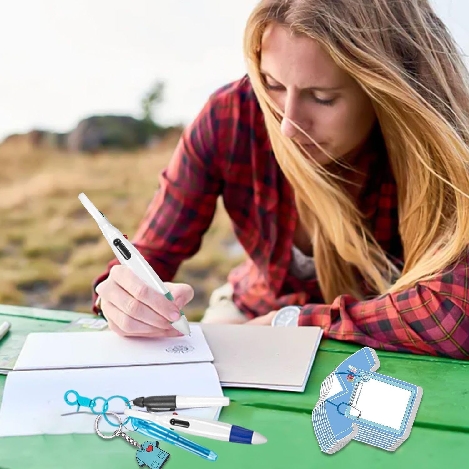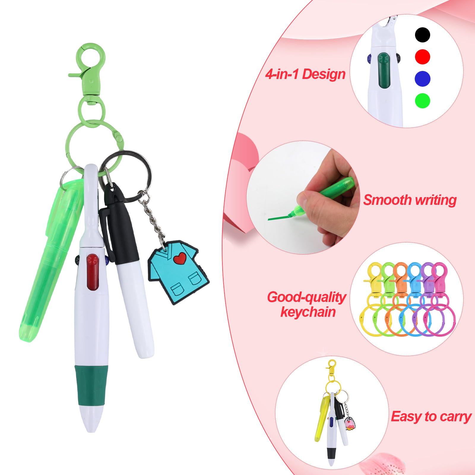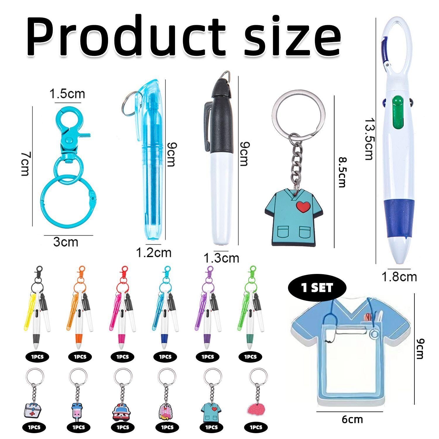NQEUEPN 6 Pen Set For Nurses, Including 6 Highlighters, 6 Marker Pens, 6 Ballpoint Pens, 6 Badges With 6 Key Ring Clips, Accessories For Badge Reels For Nurses