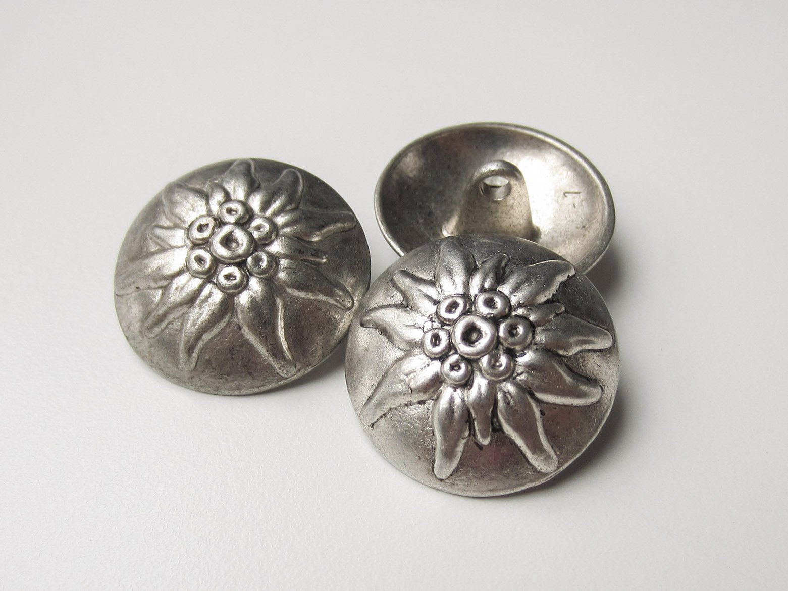 6 Stück Silber Schwarz Dunkel Matt Metallknöpfe Edelweiss 15mm Oder 22mm | Hartmann Knöpfe