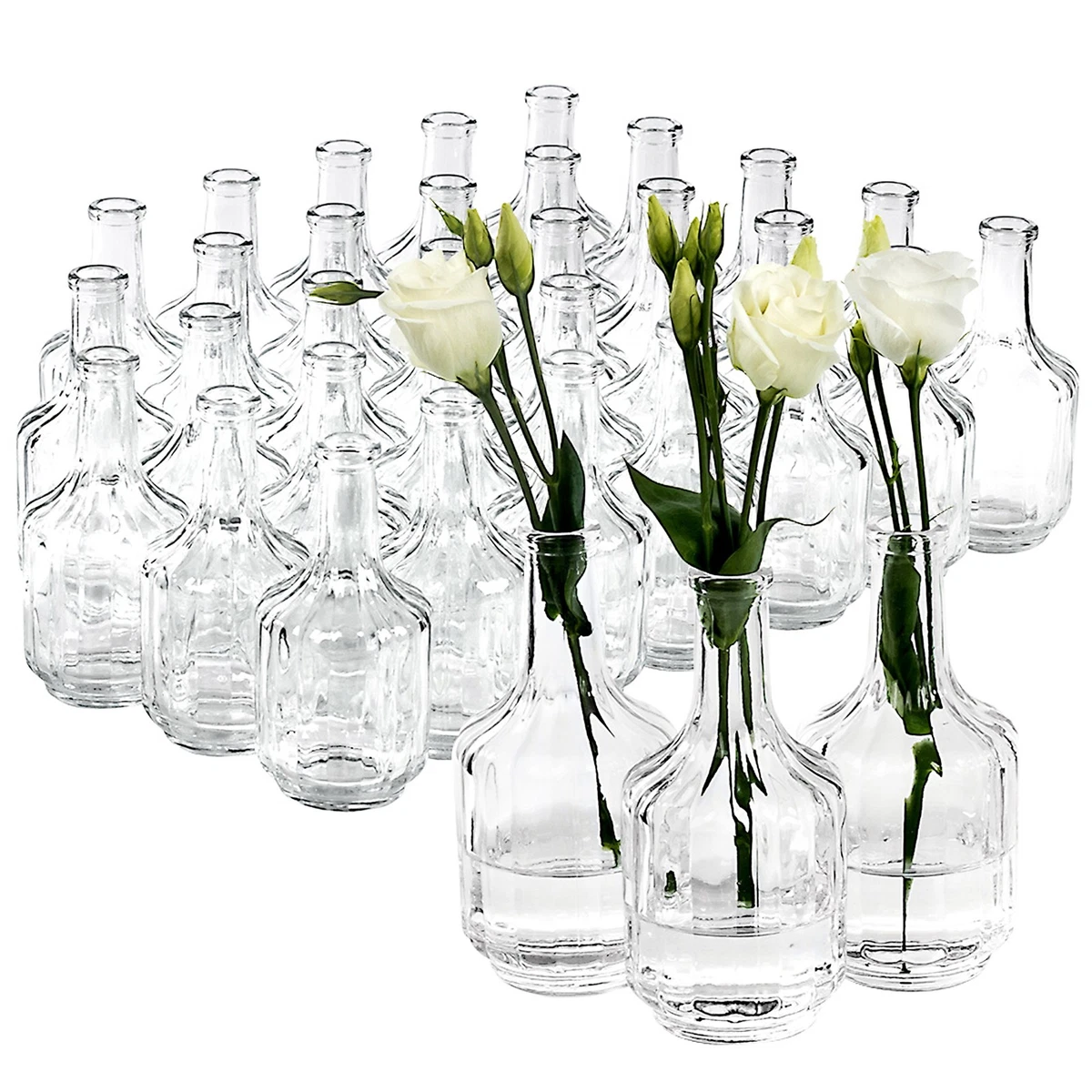 Die Öffnung hat einen Durchmesser von 3 cm. Inklusive Flaschenbürste: Zusätzlich zu den Glasfläschchen erhalten Sie eine Flaschenbürste im Lieferumfang. Dies ermöglicht es Ihnen, eine angemessene Menge an Wasser oder andere Flüssigkeiten in den Fläschchen zu platzieren, um Ihre Blumen frisch zu halten oder als dekoratives Element zu nutzen. Dieses Korkenglas hat ein Nennvolumen von 150 ml. Sie können sie auch als einzelne Vasen verwenden oder zu einer hübschen Gruppenanordnung kombinieren. Dekorative Vintage Glasfläschchen: Diese Glasfläschchen sind im Vintage-Stil gestaltet und eignen sich perfekt als Vasen oder Tischdekoration. 12 x kleine Vasen aus Glas Vintage Vasen Klein Tischdeko 6-TLG. Set Vasen Im Vintage Look H 20,5 Cm - Glasflaschen - Tischvasen - Blumenvasen - Dekoflaschen Aus Glas - Kerzenständer Vase Klein - Material: Glas / klar - Höhe 16 cm - Durchmesser ca. Das Randvollvolumen beträgt 170 ml. Fassungsvermögen von 170 ml: Jedes Fläschchen hat eine Kapazität von 170 ml bis zur Oberkante des Randes. 6 x Glasvase klar, Höhe 16 cm, Durchmesser unten 5 cm, Setpreis für 6 Vasen Sie verleihen jedem Raum einen charmanten und nostalgischen Touch. Mittelgroße Flaschenvasen als Tischdekoration für Hochzeiten, Geburtstagsfeiern oder sonstige Anlässe Die Dekoflaschen lassen sich auch wunderschön kombinieren mit Holztabletts, als Deko auf Fensterbänke, Küchentische und so weiter..Die Gläser werden ohne abgebildete Deko geliefert.