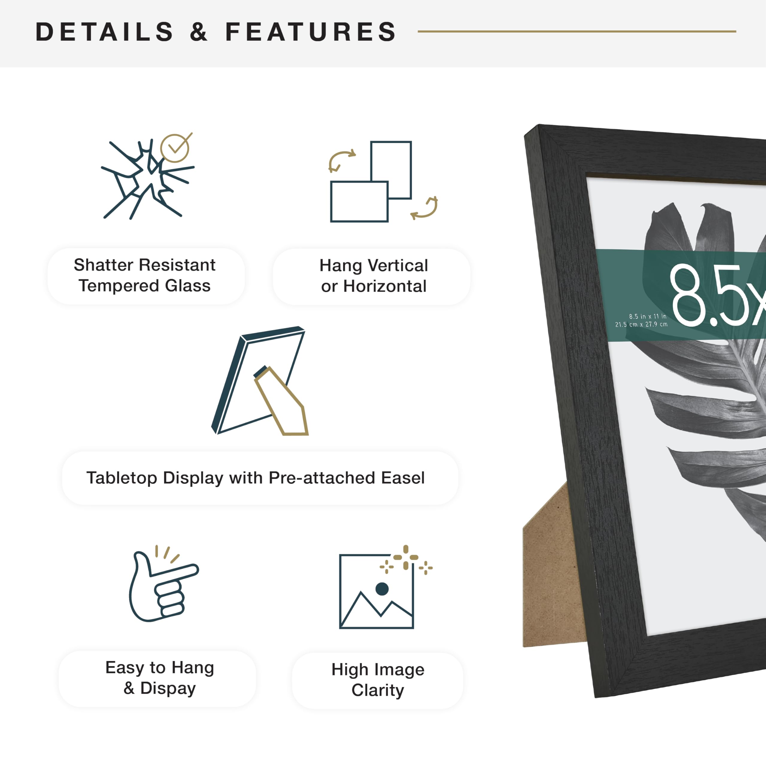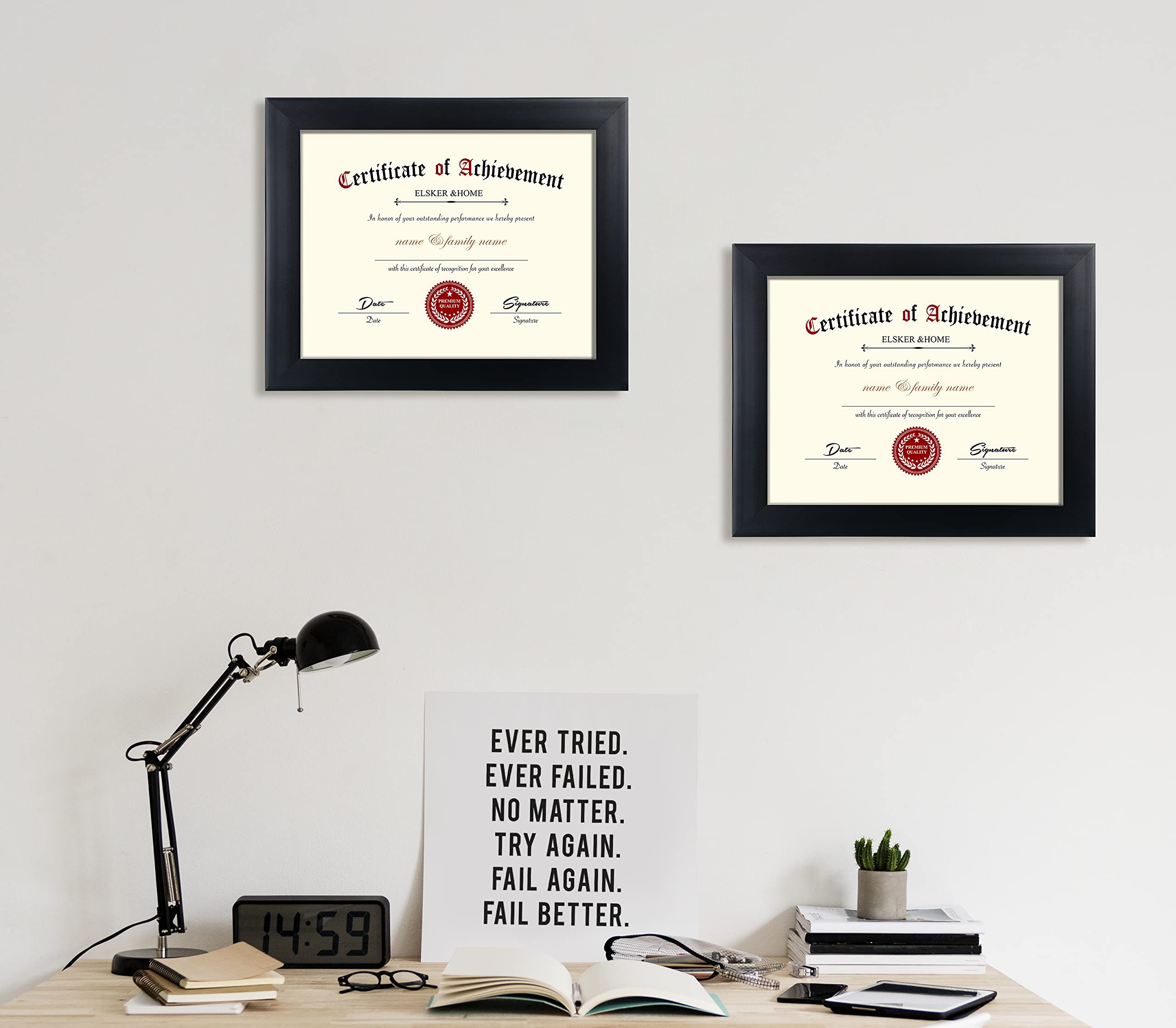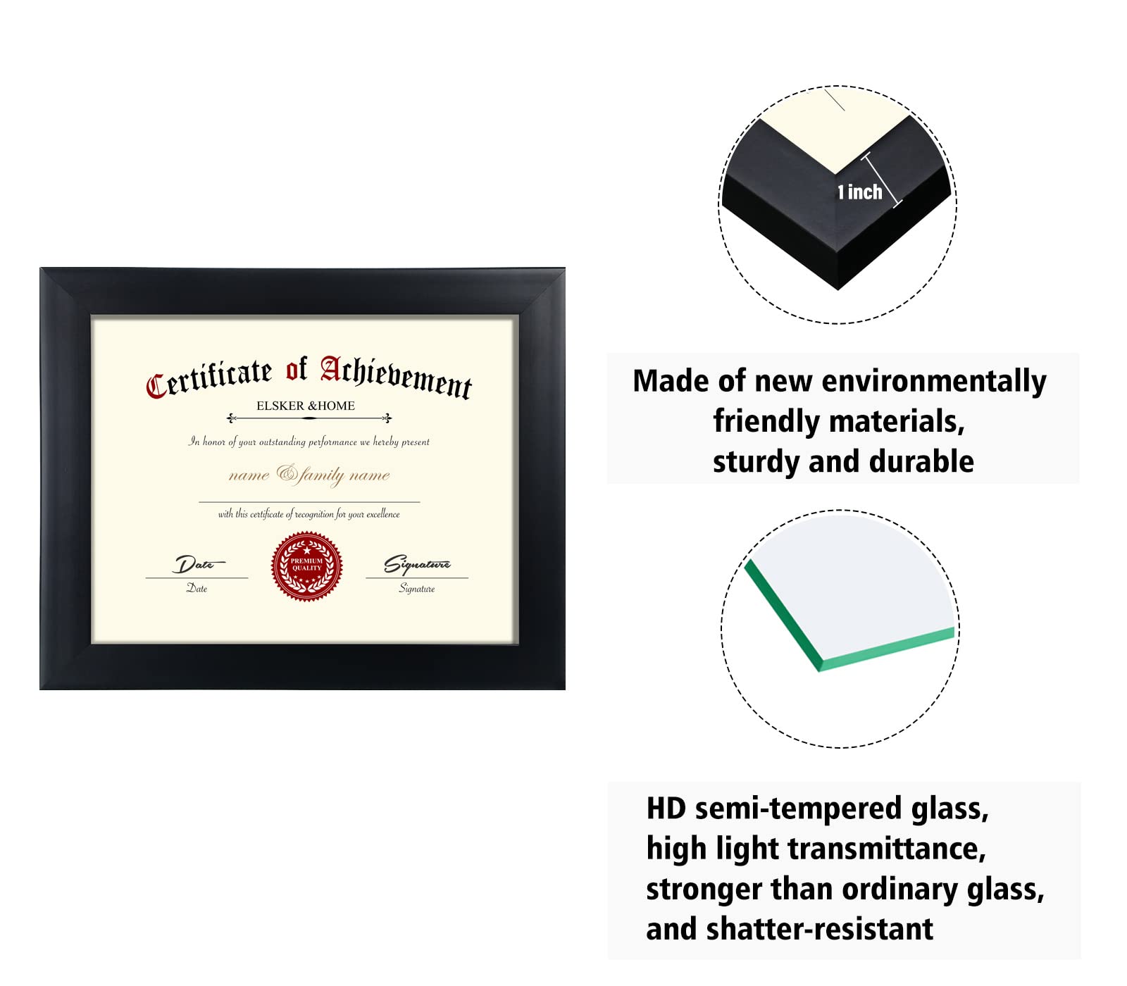 ELSKER&HOME Diplomrahmen Aus Schwarzem Glas, 21,6 X 27,9 Cm, Für Zertifikate Und Dokumente, Mit Echtglas, Für Wand Oder Tisch, 2 Stück