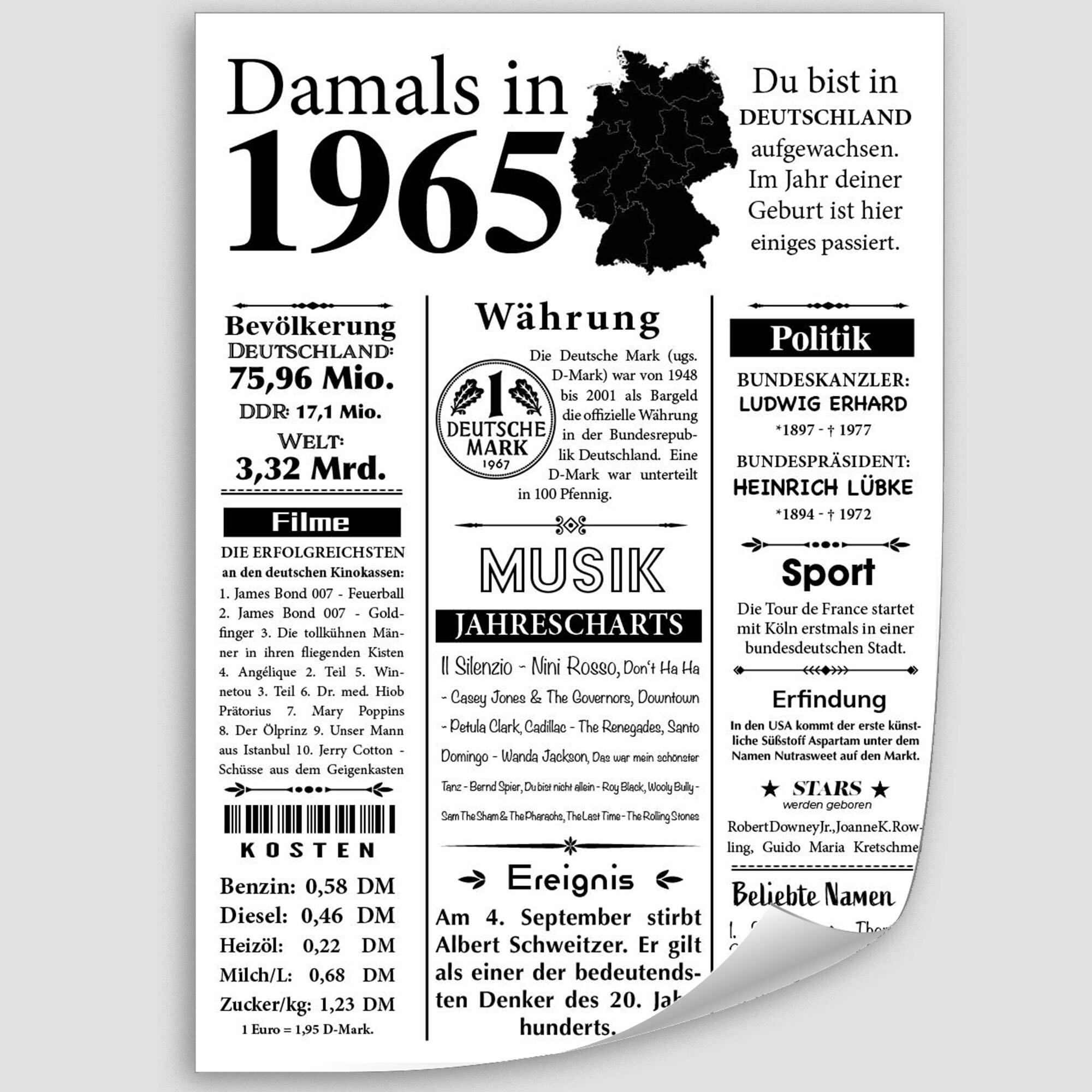 1965 Geburtsjahr Fakten Geburtstagskarte, 60. Sonderausgabe, Historische Ereignisse Und Musiktafeln, Rosa Und Gold, 23 X 15 Cm
