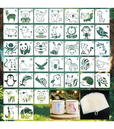 Sie können für Leinwände, Papier, Holz, Möbel, Fliesen, Stoff, etc., verwendet werden. Langlebig und Wiederverwendbar: Diese zuverlässigen Malschablonen sind aus PET-Material mit großer Flexibilität, umweltfreundlich und leicht zu tragen. Schneespray Schablonen 60 Tiermalerei Schablone Niedlich Tiere Painting StencilsWiederverwendbare Ku Schablonen Kinder Exquisite Design: Exquisite 60 verschiedene Cute Animals Formen Muster. Diese Schablonen werden die großen Geschenke für Familie, Kinder, Freunde, Studenten, DIY-Liebhaber und Anfänger sein. Bieten Sie Ihnen eine kreative DIY-Erfahrung und machen Sie Ihre DIY-Arbeiten mehr lustig und reich. MWOOT 60 Stück niedliche Tiere Malerei Schablonen Kit (60 Styles) Eigenschaften: Waschbar, langlebig, wiederverwendbar, biegbar, klein und flexibel Schablone. Arbeiten Sie mit allen Ihren Werkzeugen, einschließlich Malpinsel, Buntstifte, Marker Stifte, Skizzieren Stifte, Farbe sprühen, etc. MWOOT Pack of 36 Cute Animal Stencils Set, Reusable Painting Template Painting for Children, DIY Animal Stencil for Painting on the Wall, Gift Card, Clothes, Baby Shower (7.6 x 7.6 cm Die Größe jeder Schablone ist 7., 6x7., 6cm / 3x3in. Verwenden Sie verschiedene Malwerkzeuge, um verschiedene Farben in den Umriss der Zeichnungsschablone Muster zu füllen, warten Sie einfach ein paar Sekunden, um ein schönes Muster zu erhalten. Schablonen zum Malen - Wiederverwendbare Tiere Malschablonen, Waschbare Schablone Set für Scrapbooking DIY, 10. Die Blechmuttern sind sehr langlebig und leicht zu reinigen. verwendet werden. Darüber hinaus eignen sie sich besonders gut zum Bemalen von Stoffen Beispiele hierfür sind Pinsel, Farbstifte, Airbrushes, Graffiti-Sprühdosen, usw. MWOOT 60 Tiermalerei Schablone Niedlich Tiere Painting Stencils,Wierverwendbare Kunststoff Tiere Schablonen Zum Malen für Kinr,Zeichnung Vorlage für Scrapbooking Leinwand Handwerk (7.6x7.6cm Geeignet für Haus- und Wanddekorationen.
