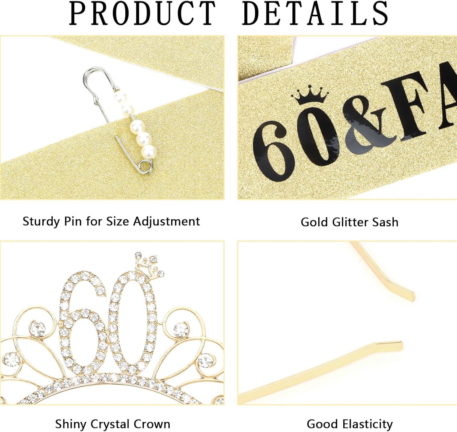 60th Birthday Sash And Tiara For Women Rose Gold Crown 60 And Fabulous Sash And Crown Set 60th Birthday Gifts For Women