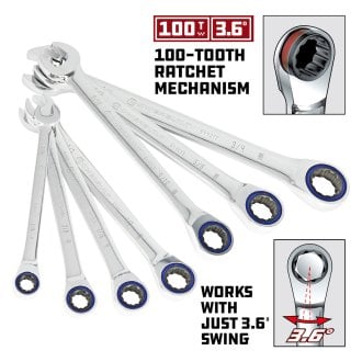 Powerbuilt 640203 SAE Stubby Combo WRNCH Set, 7-teilig, Silber