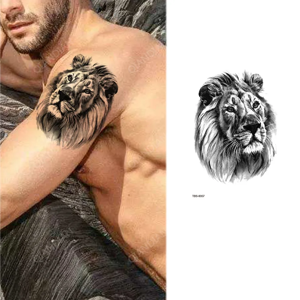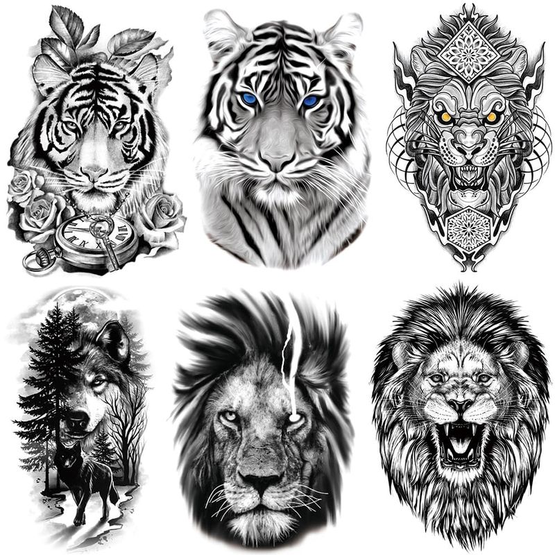 6PCS 3D Realistischer Tiger Löwe Temporäre Tattoos, 3D