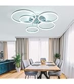 HYKISS LED-Deckenleuchte 86W Modern Dimmbar 6 Ringe Deckenlampe Metall-Acryl Runde Kronleuchter Wohnzimmer Küche Schlafzimmer Büro Kinderzimmer Lampe Beleuchtung,Mit Fernbedienung,115CM,Weiß