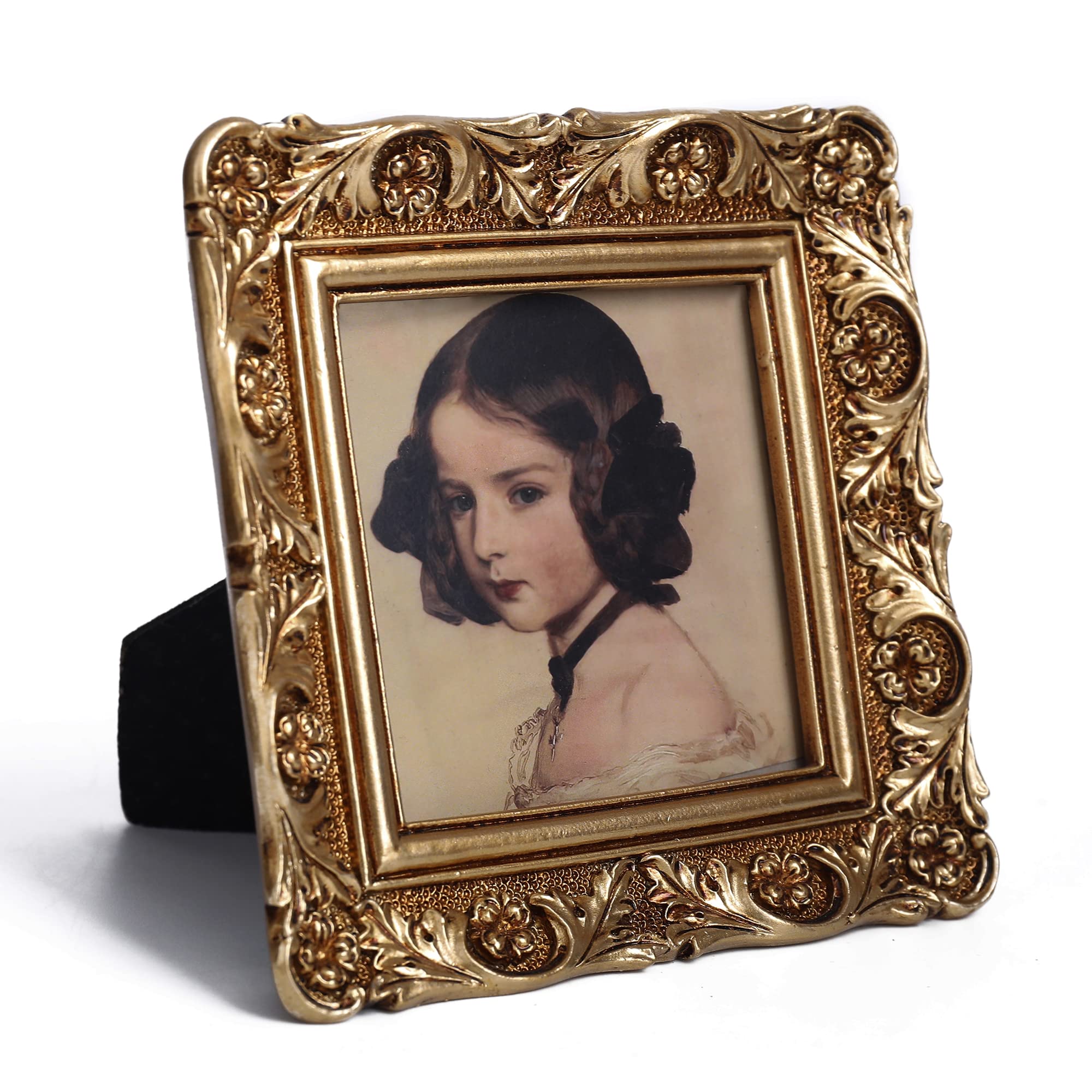 Vinlife, Mini-Bilderrahmen, 7,6 X 7,6 Cm, Kleine Vintage-Rahmen, Quadratisch, Für Wand Und Tisch, Antikes Grün-goldenes Zierdesign, Viktorianisch, Galeriewand-Deko Mit Geprägtem Blumendesign