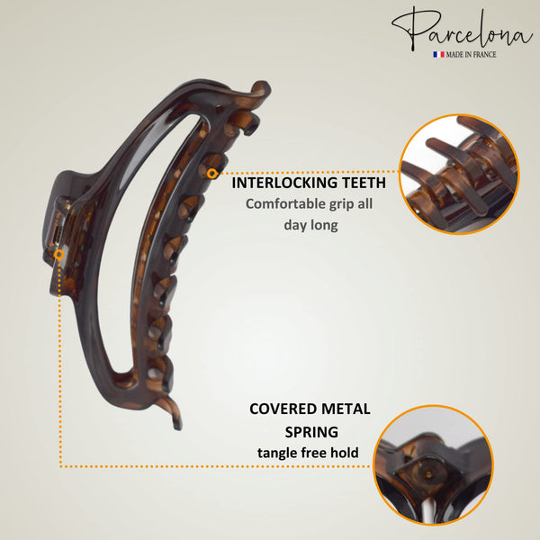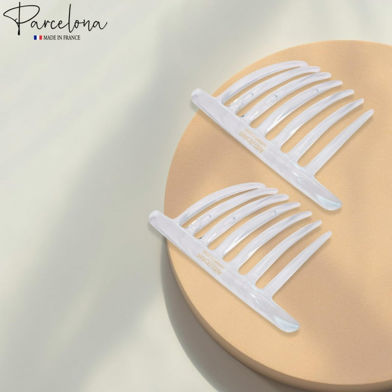 French Comb Parcelona French Twist 7 Teeths Large Celluloid Clear Hair Side Comb French Side Comb I have thick hair a little longer than shoulder length, I twist it up in the back and put this French twist comb in on the side of the twist and I’m converted to Breakfast at Tiffany’s Made in France; Good Grip Side Combs; Tortoise Shell; Clear; Black; Sturdy; Cellulose Everlasting Luxurious Shiny Finish; Non-Brit; Set of 2 Combs; Length