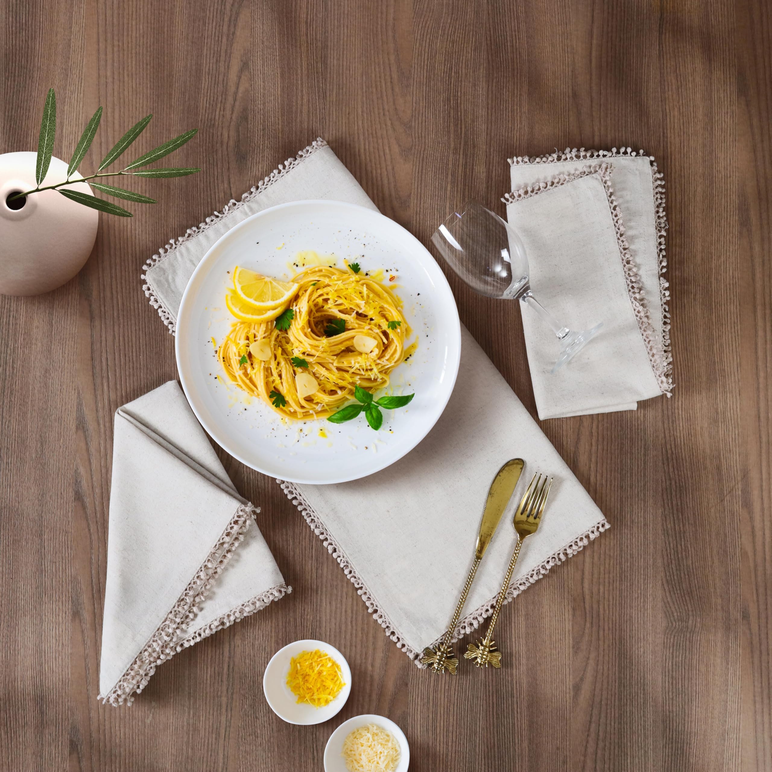 Leinen-Stoffservietten, 45,7 X 45,7 Cm, Naturfarben, Mit Dekorativer Spitze An Webkante, Abendessen, Hochzeit, Tisch, Babyparty, Maschinenwaschbar, Stoffservietten, 12 Stück