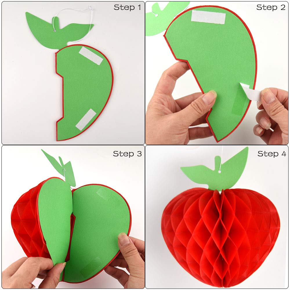 FEPITO 10 Pack 7 Zoll Apfel Gewebe Bienenwabe Hängend Rot Papier Apfel Dekorationen Obst Dekoration Für Zurück Zur Schule, Babydusche