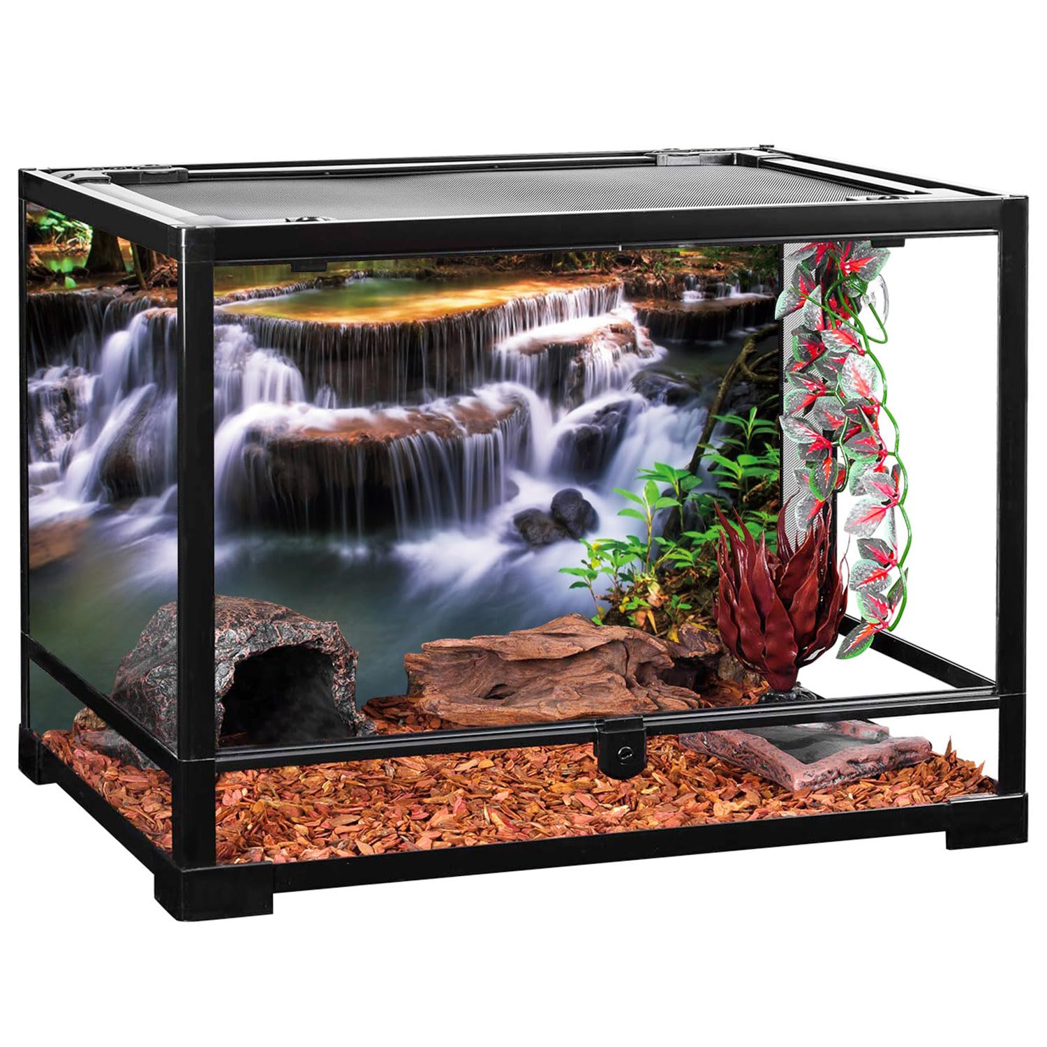 AWERT 76,2 X 45,7 Cm Nebel Wald Terrarium Hintergrund Stein Grün Baum Tropisch Reptil Habitat Hintergrund Regenwald Aquarium Hintergrund Durable Polyester Hintergrund