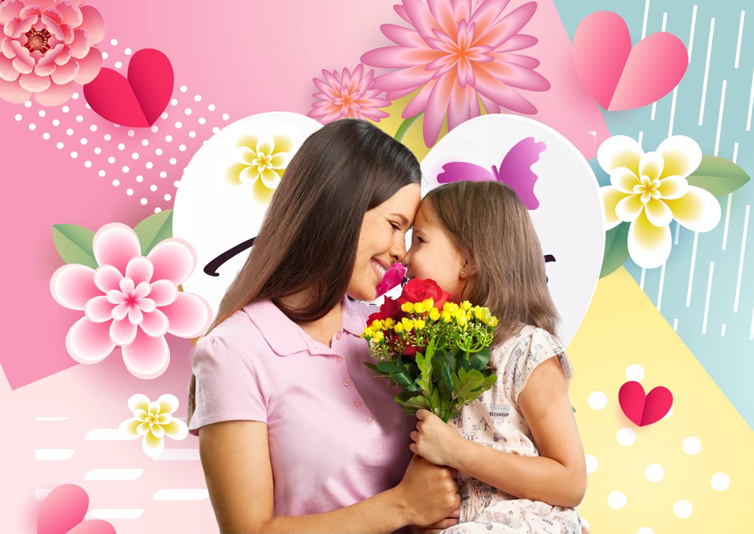CHAIYA 2,4 X 1,8 M Happy Mother's Day Hintergrund Rosa Liebe Herz