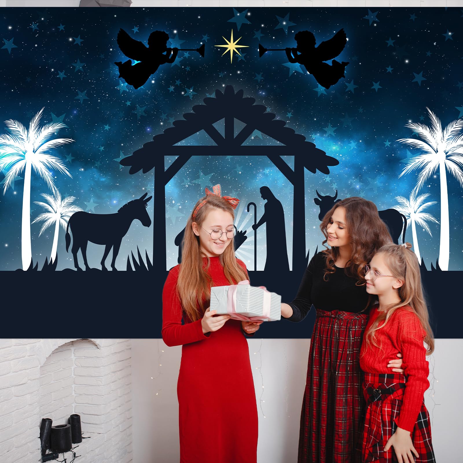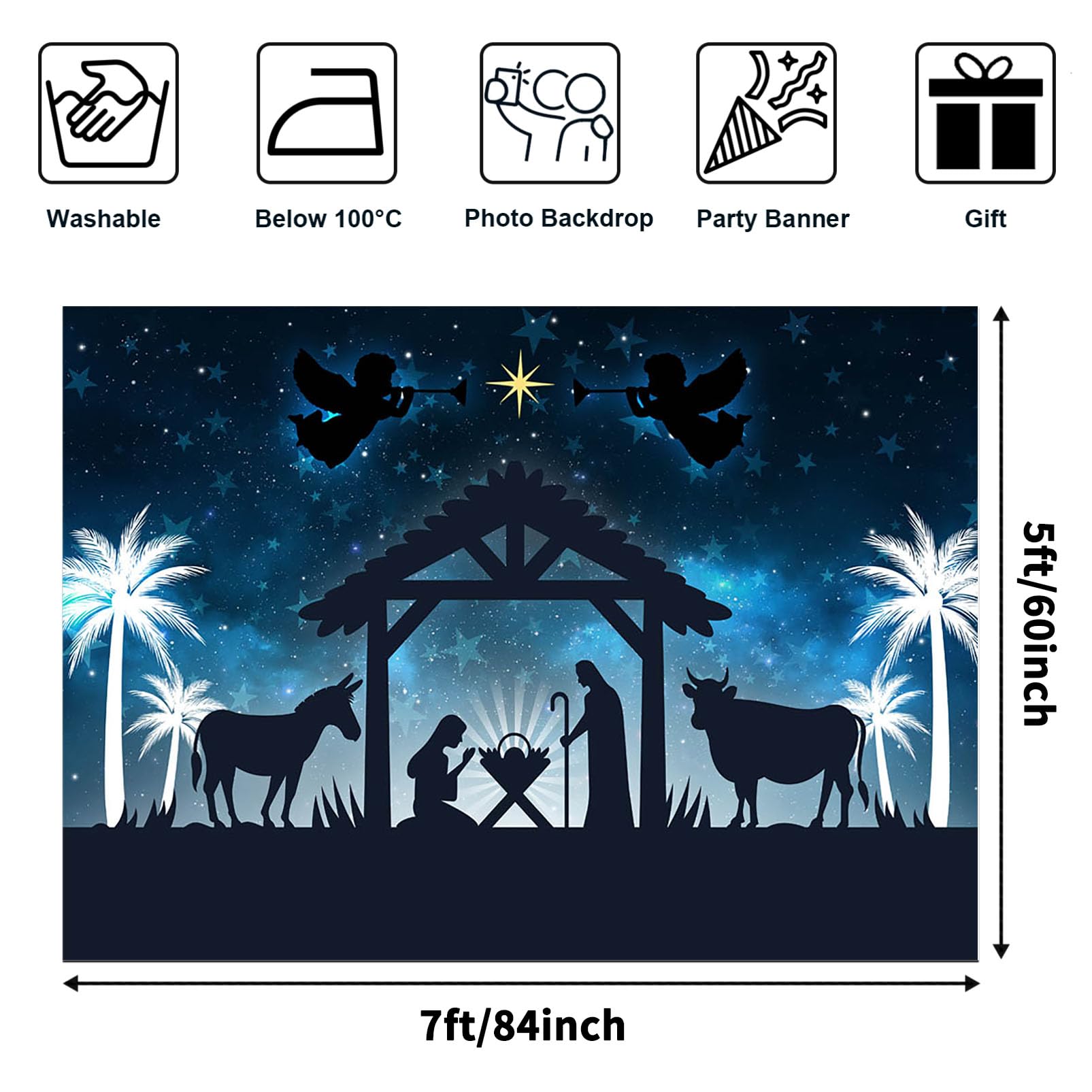 Stoff-Krippen-Hintergrund, 2,4 X 1,8 M, Weihnachtskrippe, Heiliges Kind, Für Weihnachten, Kirche, Frohe Weihnachten, Jesus, Christlicher Hintergrund
