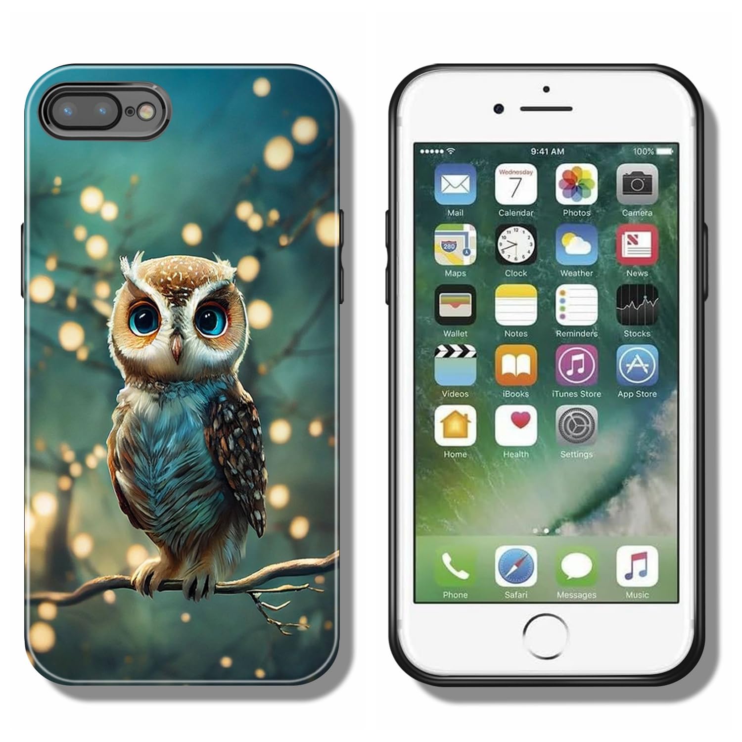 Handyhülle Für IPhone 7 Plus 8 Plus Hülle Tier Muster Motiv Weich TPU Silikon Schwarz Case Für Mädchen Jungen Dünn Slim Soft Cover - Eulen-Baum