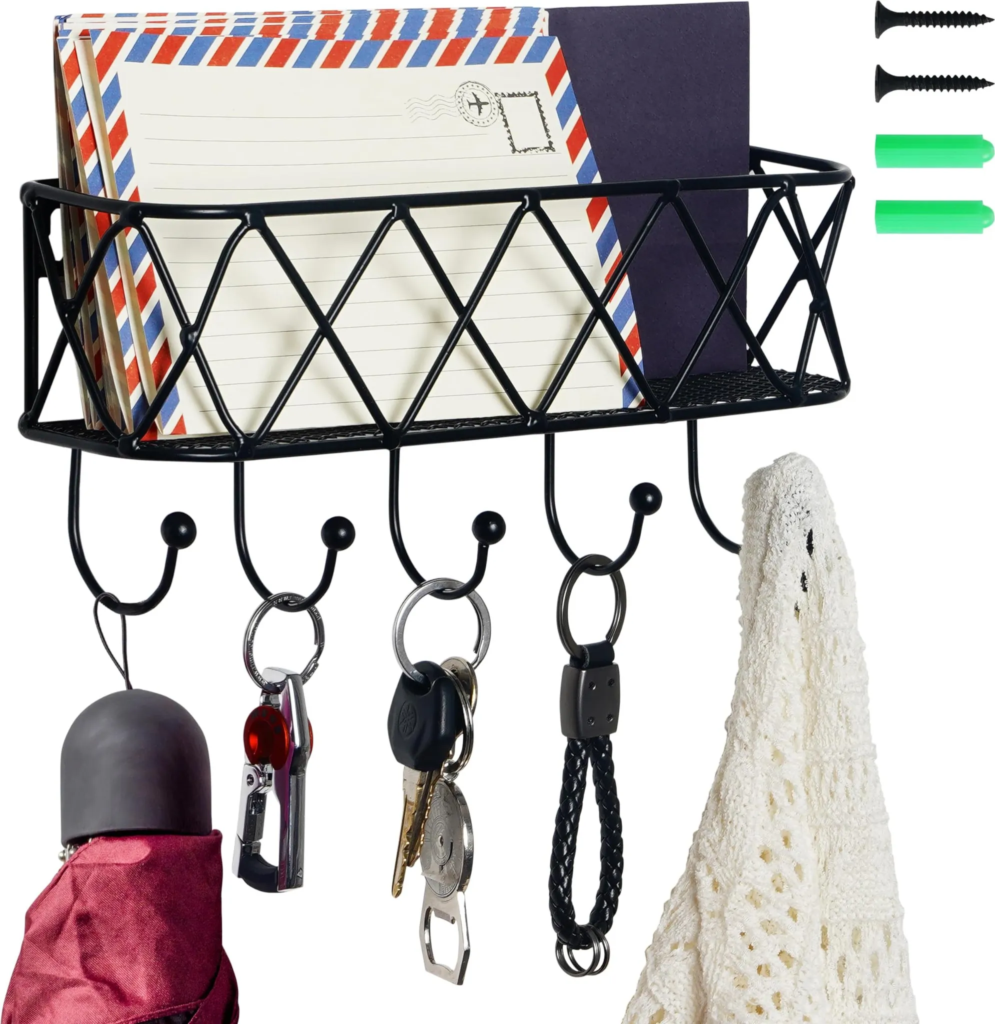 CLESOO Schlüsselbrett Mit Ablage & Briefhalter 8 Schlüsselhalter Wand Briefablage Mit 2 Posthalter, Memoboard- Schlüsselleiste Schlüsselboard Dekoration Schlüsselhaken Für Verbindungsgang Flur