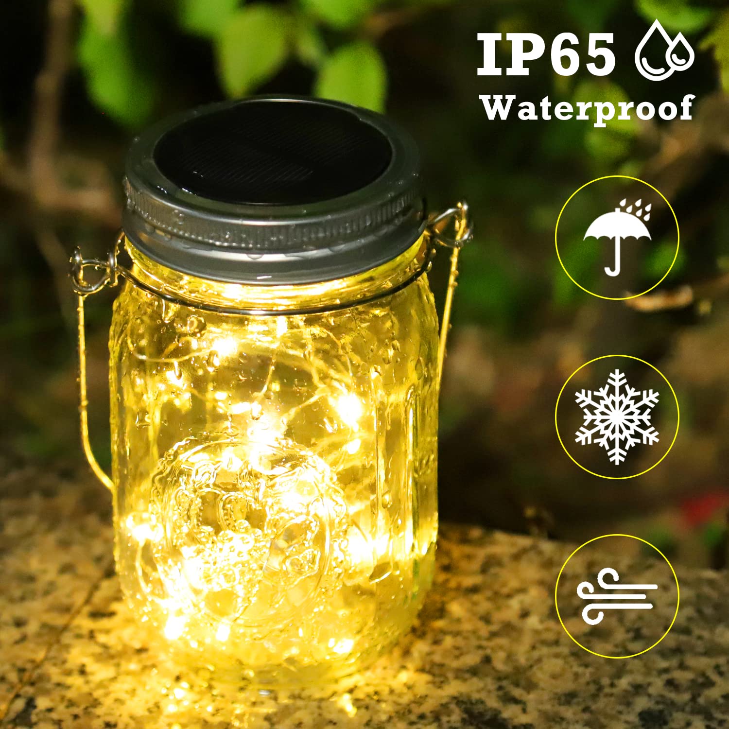 8 Stück Solar-Einmachglas-Deckel, 20 LEDs, Wasserdichte Lichterkette Mit 8 Aufhängern (Gläser Nicht Im Lieferumfang Enthalten), Für Hochzeit, Outdoor, Rasen, Party, Weihnachtsdekoration (kaltweiß