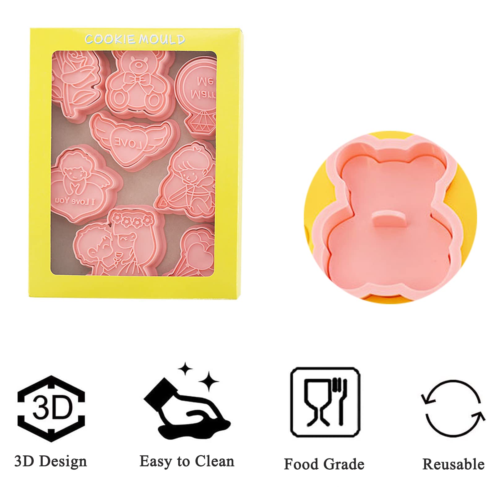 Lustige Plätzchen Ausstecher 8 Stück Tier Ausstechformen, 3D Tierform Prägeausstechformen Plätzchen Ausstecher Kunststoff Ausstecher Kunststoff Tiere, 8 Stück Kunststoff Ausstechformen, Kinder Und alle Ausstechformen können wiederverwendbar und langlebig sein, kein Ausbleichen, keine Verformung, langer Service. 💕TOLLE GESCHENKIDEE: Um die Freude am DIY-Dessert zu teilen AOOGON Valentinstag Ausstecher Set ist eine gute Wahl, tolles Geschenk an Freunde, Familie, Valentinstag und Partys. 💕HOCHWERTIGE AUSSTECHFORMEN SET: Hergestellt aus lebensmittelechtem Kunststoff, Valentinstag Themenformen, lustig und sicher, langlebig und wiederverwendbar. 💕MULTI-ANWENDUNGEN: Alle Keksschneider für den Valentinstag können zum Backen, Keksschneider, Brotschneider, Weichobstschneider, Kreppschneider und so weiter verwendet werden. 💕8 VALENTINSTAG PLÄTZCHEN AUSSTECHER SET: Verschiedene Muster, die speziell für den Valentinstag entworfen wurden, geben Ihren Lieben eine unvergessliche Erinnerung und überraschen Sie mit einem handgemachten Keks Geschenke an diesem Valentinstag! Die herzförmigen Ausstechformen sind perfekt zum gemeinsamen Backen von Keksen oder Kuchen und eine ideale Ergänzung für Ihre Backsammlung - für einen Hauch Romantik Was sollte in keiner Küche fehlen? Ausstechformen in allen möglichen Formen und Größen. Bei uns findest du eine große Vielfalt an Ausstechförmchen zu verschiedensten Themen und Anlässen. Stöbere durch unsere kreativen Plätzchen-Ausstecher für Weihnachten, Ostern oder den Kindergeburtstag 8 Stück Der Valentinstag Ausstechförmchen Set, 3D Fondant Ausstechformen, Stempel Ausstechformen Keksausstecher für Brot Fondant Schokoladen Keks AOOGON Valentinstags-Ausstechformen helfen, das Backen interessanter zu machen.