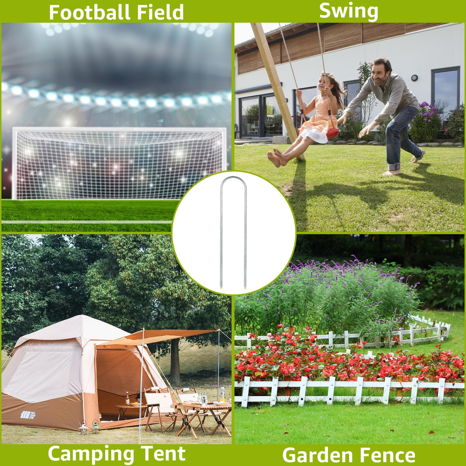 Einfach zu installieren – Die spitze Spitze der Trampolin-Heringe erleichtert das Einführen in den Boden, einfach auf die richtige Tiefe klopfen, um Ihre Gartenmöbel an Ort und Stelle zu fixieren, es sind keine anderen Werkzeuge erforderlich. Die Erdspieße bieten überlegene Stabilität dank ihres Spiralmusters, das die Reibung erhöht und das Risiko verringert, dass sie sich lösen. Gartentrampolin Komplettset Zubehör Netz Leiter Trampolin Kindertrampolin 305cm U-förmige Heringe, 30 cm lange Zeltheringe aus verzinktem Stahl, Heringe für Campingzelte, U-Haken, robuster Bodenankerpfahl für Campingzelte, Schaukeln, Trampolinüberdachungen Erdspieße Metall 8 Stück Trampolin-Heringe - 30,5 Cm U-förmiges Trampolin-Zubehör Heringe Erdnägel Stabil Größe: 300 mm Länge x 8 mm Durchmesser. Hohe Sicherheit – Die Erdspieße bieten überlegene Stabilität dank ihres Spiralmusters, das die Reibung erhöht und das Risiko verringert, dass sie sich lösen. Diese vielseitigen Erdanker können für eine Vielzahl von Anwendungen in Ihrem Garten verwendet werden, einschließlich Zelte, Schaukeln, Trampoline, Fußballtore und vieles mehr. Lieferumfang: 12 U-förmige Zeltheringe in 300 mm Länge x 8 mm Durchmesser Spezifikation: 4 x U-förmige Bodenanker. Größe]: Jede Packung enthält 4 Erdanker Bodenanker, ca. 30,5 cm lang, 0,95 cm Durchmesser; Haken ist 1-1/2 Zoll. [Heavy Duty]: Unsere Bodenpfähle bestehen aus hochwertigem Stahl mit verzinkter Oberfläche, sind rostfrei und stark genug, um starken Winden standzuhalten Money Back Guarantee ensures that buyers receive the item they ordered or get their money back.