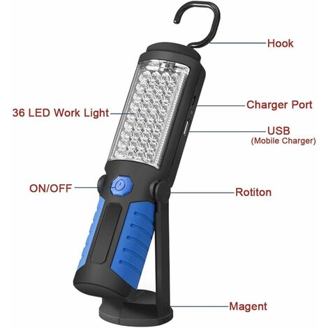 800 Lumen Wiederaufladbare LED-Arbeitsleuchte, Magnetfuß, 5 Modi Für Garage, Camping, Tragbare LED-Taschenlampe Für Den Notfall