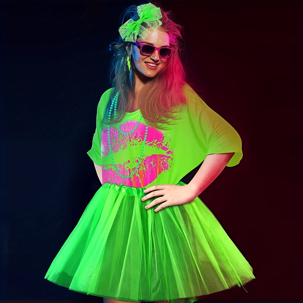 7 Teiliges Damen 80er Retro Kostüm Zubehör Set Neon - Germany