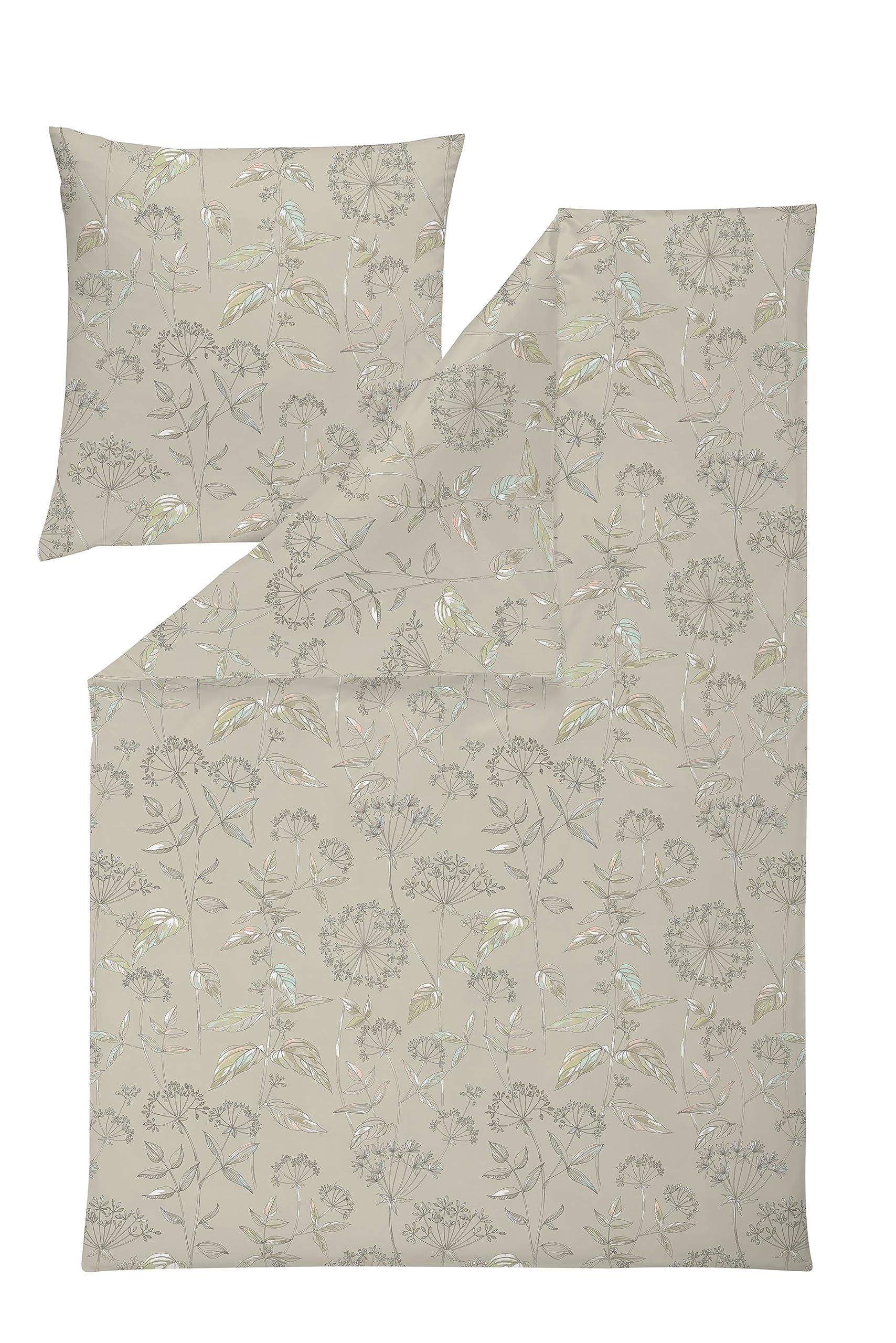 Estella Mako-Satin Bettwäsche 135x200+80x80 Cm Olina Grün Beige Blätter