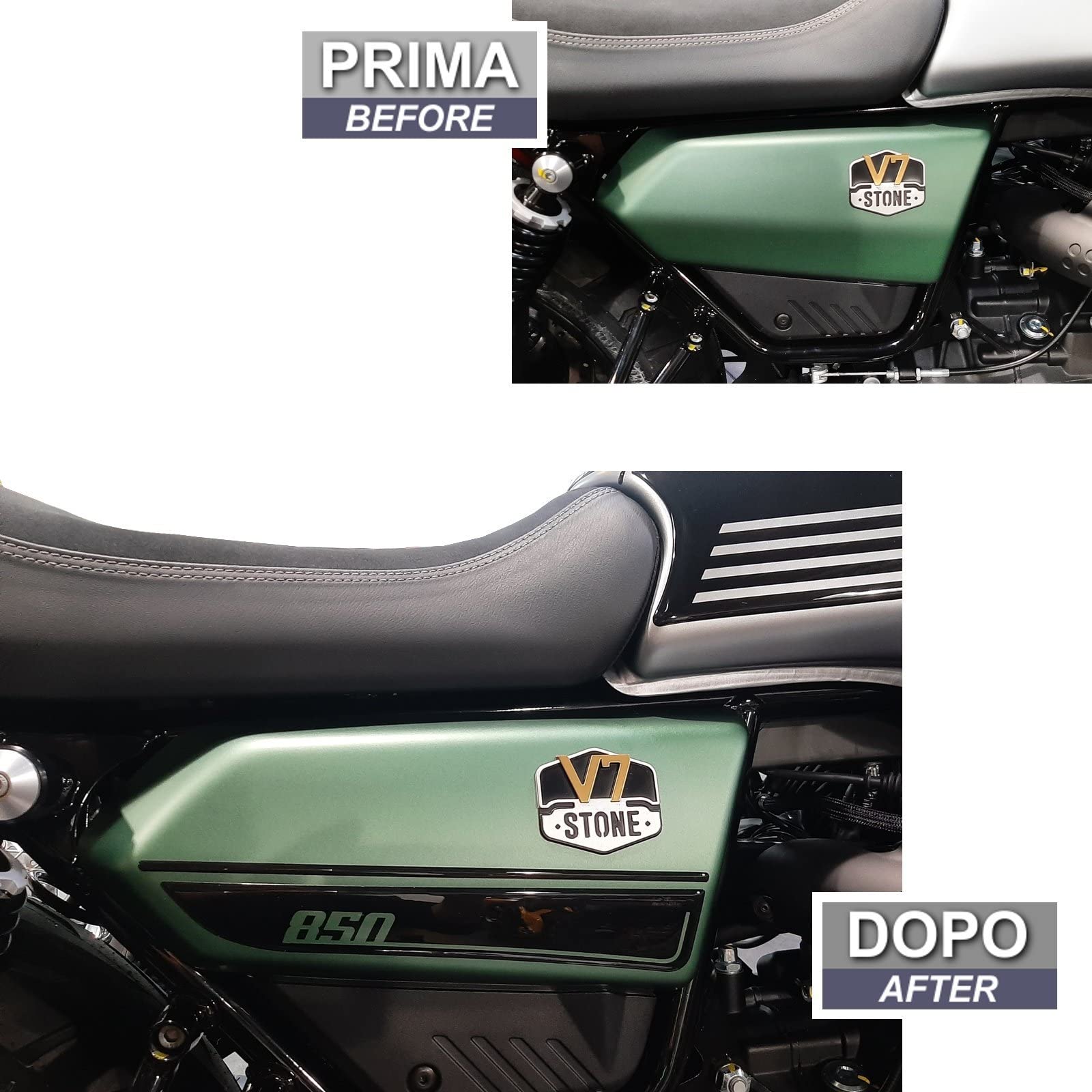 Moto Gp V7 850 2021 Tankdeckel Shutz 3d Gel Aufkleber Fur Motorrad Moto Guzzi Reinigen Sie die Oberfläche des Motorrads, mit einem weichen, trockenen und sauberen Tuch, das keine Rückstände hinterlässt. Sie wurden auf hohe Leistung getestet und sind ideal zur Dekoration und zum Schutz Ihres Motorrads vor Kratzern, Stößen und Witterungseinflüssen. [SCHÜTZT UND DEKORIERT]: Alle Resin Bike Motorradaufkleber sind widerstandsfähig und werden in Italien hergestellt. Was ist der Unterschied zwischen einem harzbeschichteten Aufkleber und einem normalen? Der Unterschied liegt in einer 2-3 mm dicken Schicht harzfreier Resin, die den Aufkleber widerstandsfähiger gegen Witterungseinflüsse und UV-Strahlen macht und das Ausbleichen der Farben verhindert. [PERFEKTE HAFTUNG]: Waschen Sie Ihre Hände mit Seife um Fett und Schmutz zu entfernen, da dies die Haftung des Produkts beeinträchtigt. Unsere Stärken WASSERDICHT Die Resin Bike Aufkleber sind wasserdicht und resistent gegenüber Feuchtigkeit und Waschvorgängen Unsere Stärken SHOCKPROOF Die Resin Bike Aufkleber schützen dein Motorrad vor Stößen und Kratzern 1 WASSERDICHT 2 FROSTBESTÄNDIG 3 SHOCKPROOF 4 SUNPROOF, AUFKLEBERANBRINGUNG 1., WIE MAN DIE ANWENDUNG VORBEREITET: Wasche deine Hände gründlich mit Wasser und Seife., AUFKLEBERANBRINGUNG 2., WIE MAN DAS MOTORRAD REINIGT: Reinige die Oberflächen gründlich mit speziellen Reinigungsmitteln., AUFKLEBERANBRINGUNG 3., WIE MAN DEN AUFKLEBER POSITIONIERT: Aufkleber vorsichtig anbringen, ohne den Kleber zu berühren., AUFKLEBERANBRINGUNG 4., WIE MAN DEN AUFKLEBER BEFESTIGT: Mit einem Fön für bessere Haftung erwärmen. Unsere Stärken SUNPROOF Die Resin Bike Aufkleber sind UV-beständig, dank des Harzes, das als Filter fungiert Bringen Sie den Aufkleber passgenau auf die Form des Motorrads auf, um zu vermeiden, dass sich der Aufkleber mit der Zeit ablöst. leichtes Aufbocken des Motorrades<br /