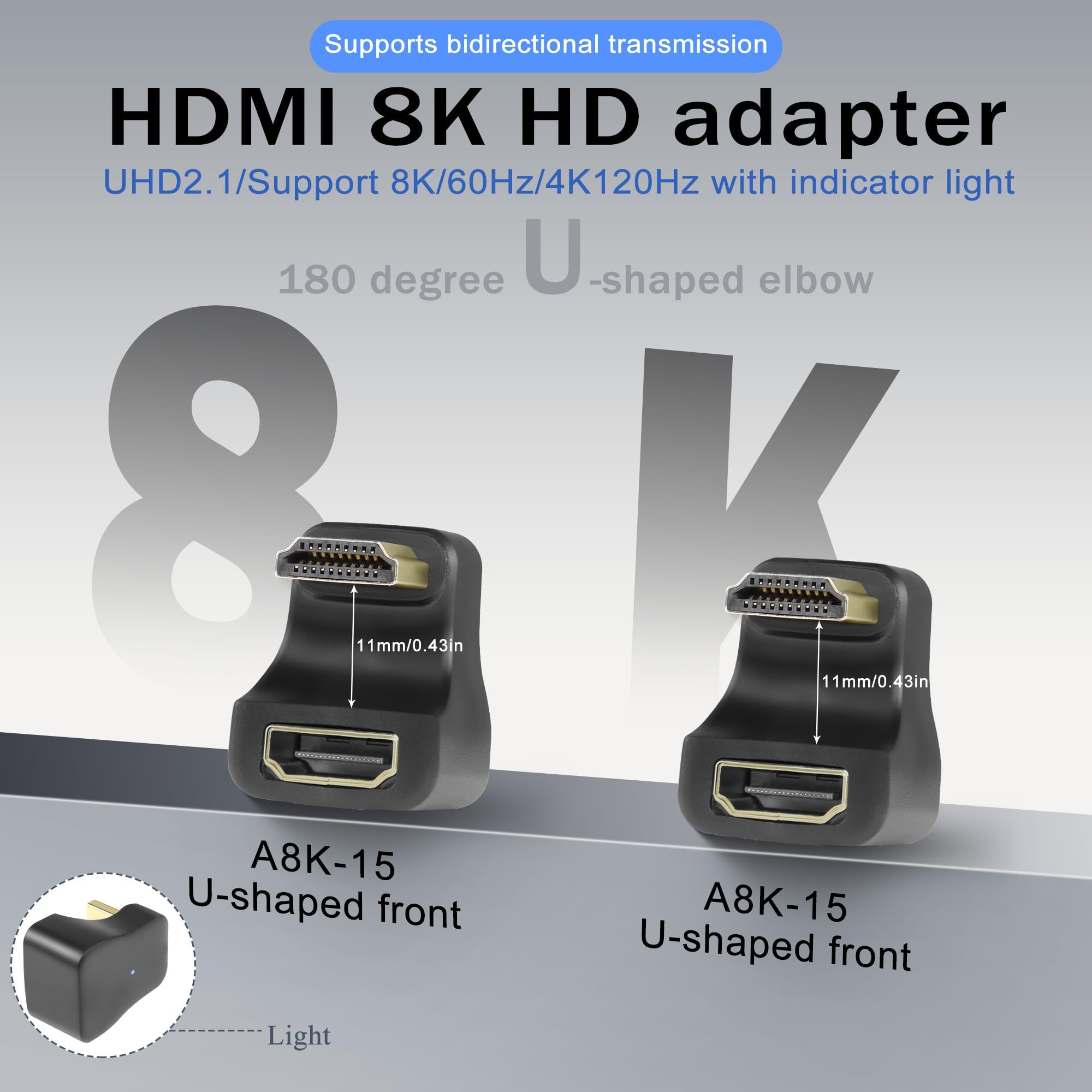 【LED Arbeitsleuchte】Mini HDMI Stecker auf Mini HDMI Buchse HD Display U förmige Winkel Anschluss. U förmiges Design mit 180° Winkel nach oben, einfach zu verkabeln in engen Räumen. Mit LED Anzeige, leuchtet auf, wenn es funktioniert. Dient zur Erkennung von Bewegungen im Sichtfeld des Sensors. QIANRENON 240 W 40 Gbps USB C U föriger Adapter USB 4.0 Type C Stecker... 【8K HD】Mini HDMI Stecker auf Mini HDMI Buchse 180 Grad Winkel Adapter. Unterstützt eine Auflösung von bis zu 8K@60HZ, UHD2., 1 Bildqualität, 3D und digitales Mehrkanalton. Stellen Sie sicher, dass Ihr Gerät über einen Mini HDMI Anschluss verfügt. Hinweis: Bitte überprüfen Sie vor dem Kauf die Ausrichtung des Mini HDMI Anschlusses Ihres Geräts. U Form 180° Winkel nach oben Design, bequem für die Verkabelung in engen Räumen. QIANRENON 8K Mini HDMI U Förmig Winkel Adapter UHD2.1 Mini HDMI U Formig Winkel Adapter Uhd21 Mini Hdmi Stecker Auf Mini Hdmi Buchse 180 Grad Unten Display Anschluss Led Licht Fur Digitalkamera Tragbare Camcorder Tablet Pc Vorderseite (Hinweis: Um 8K Leistung zu erhalten, muss das Kabel, Gerät HDMI 2., 1 unterstützen und die Länge des angeschlossenen Kabels ≤ 3m). Leicht und kompakt, kann im Geräteanschluss belassen werden, ohne zu stören. 【Mini HDMI auf Mini HDMI】8K Mini HDMI Stecker auf Buchse U Förmig Winkel Adapter., Standard Mini HDMI 2., 1 Anschluss. QIANRENON HDMI 2.1 U Förmig Winkel Display Adapter 8K HDMI2.1 Stecker auf Buchse 180 Grad Winkel Ultra HD Anschluss 3D 8K@60Hz UHD2.1,für HDTV Laptop Monitor Projektor, 2Pcs (1 Vorwärt+1 Rückwärt) Besuche den QIANRENON-Store 4,6 (99 Mikrowellen-Unterputz-Bewegungsmelder für Buchse 180 Grad, IP20 – AMK