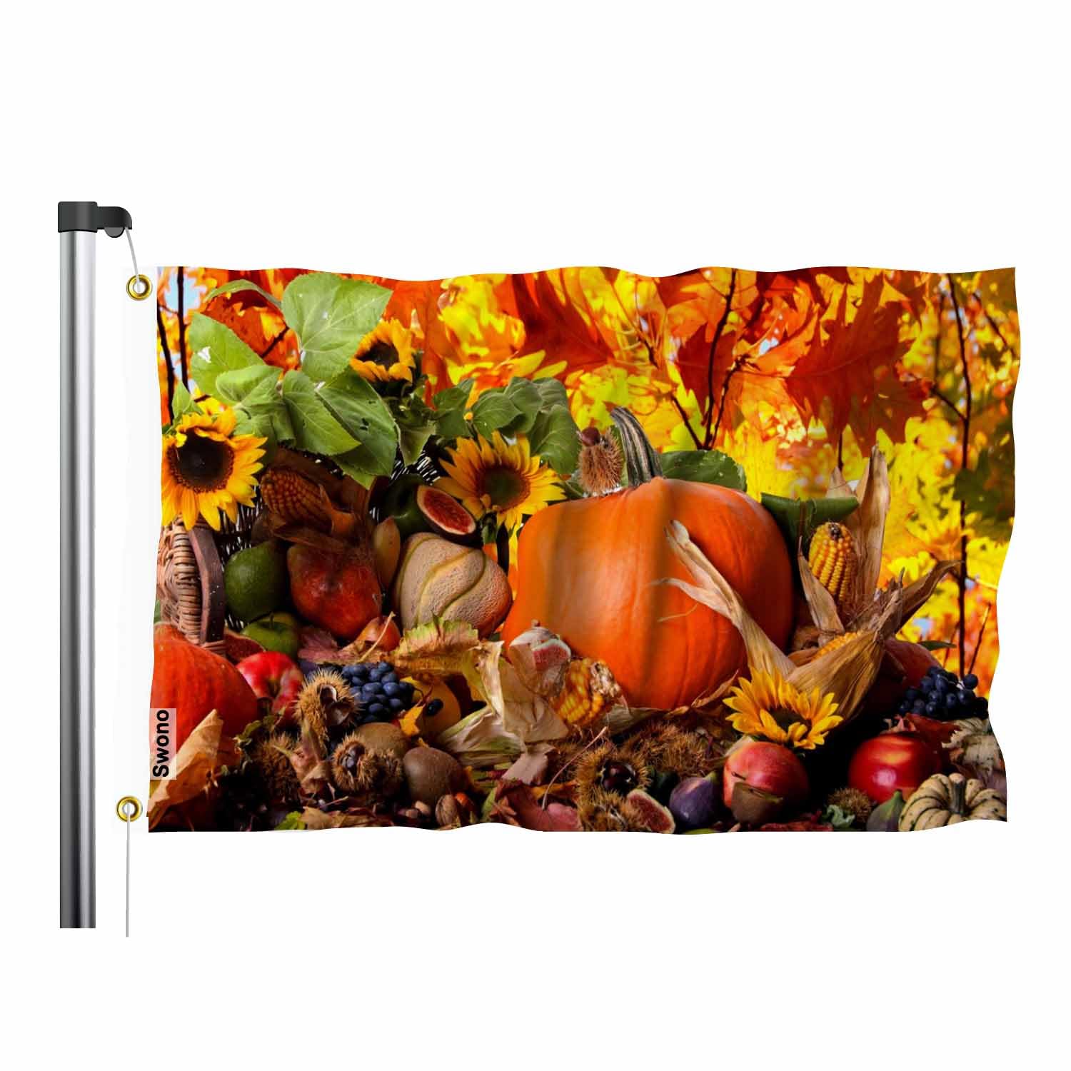 SENSEVEN Hello Fall Thansgiving Flagge, 90 X 150 Cm, Herbst Kürbis