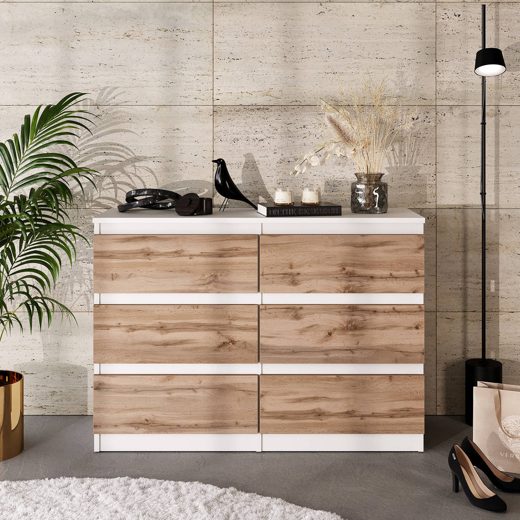 ✅【Vielseitig Einsetzbar】- Ideal für Schlafzimmer, Wohnzimmer, Flur oder jeden anderen Raum, in dem zusätzlicher Stauraum benötigt wird. ✅【Umfangreicher Stauraum】- Großzügige Kommode mit 6 leichtgängigen Schubladen, ideal zur übersichtlichen Aufbewahrung verschiedenster Gegenstände. Dauerhafte Verbindung der Elemente Wir verwenden für unsere Schränke nur die besten Beschläge, um die Haltbarkeit der Möbel zu gewährleisten. ✅【Produktmaße】- Breite: 100 cm, Höhe: 71 cm, Tiefe: 33,5 cm. Die Rollen sind sehr einfach zu montieren. ✅【Großzügiges Stauvolumen】- Bietet dank der acht tiefen Schubladen reichlich Platz für Kleidung, Accessoires, Dokumente und vieles mehr. Haltbare POM-Schubladenschienen Zuverlässige und sehr haltbare POM-Rollen sorgen dafür, dass unsere Schränke eine lange Nutzungsdauer ohne mechanische Probleme haben. Kommode Sideboard CLIF 1 Tür 4 Schubladen Old Wood Optik, von Forte Komodenschrank 120 Cm Breit MCA Furniture Schuhbank Garderobenbank CALI, B 91 X H 45 Cm, Weiß Matt, Eiche Wotan Dekor, 2 Kommode 100cm Breit Stabile Scharniere Alle unsere Möbel sind mit hochwertigen Scharnieren ausgestattet, die in 3 Dimensionen verstellbar sind und durch Lösen einer einzigen Schraube leicht demontiert werden können. Jetzt kaufen ➡️️ MIKEL - Kommode / Sideboard mit 3 Schubladen und 1 Tür - Anthrazit / Schwarz Gloss H75cm B80cm T35cm ➡️ Furnica bietet eine große Auswahl an Möbelkomponenten und Möbelbeschlägen zu den besten Preisen! Regal Landhaus Stil Anthrazit Matt / Wotan Eiche – Glitz Wohnkomfort Eine Kommode 100 cm Breit passt perfekt in viele Einrichtungsstile. Sie kann im Schlafzimmer, Flur oder Wohnzimmer stehen. Diese hochwertige Kommode bietet viel Platz. Sie macht deine Wohnung schöner. Dank ihrer stabilen Bauweise und dem modernen Look ist sie perfekt für jedes Zuhause