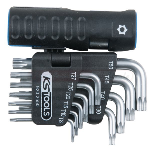 Torx Winkelstiftschlüssel Satz KS Tools 964.0315 EDELSTAHL Innen6kant-Winkelstiftschlüssel-Satz, 7-tlg Imboschlüssel Satz KS Tools 920.2550 TX Winkelschraubendreher-Set TB 8, TB 10, TB 15, TB 20, TB 25, TB 27, TB 30, TB 40, TB 45, TB 50 10tei kaufen Bohrung am kurzen und langen Ende , durchgehend gehärtet , matt verchromt , Spezial-Werkzeugstahl Der Torx-Stiftschlüssel-Satz von KS TOOLS (151.4820) umfasst 10 lang gebohrte Torx-Winkelschlüssel, die ideal für Arbeiten in engen Räumen sind. Dieser Satz bietet die Vorteile einer Ratsche, einschließlich schnellem Lösen und Anziehen Torx-Winkelstiftschlüssel-Satz mit Bohrung, lang, 10-tlg, TB8-TB50 Artikel-Nr.: 151.4820 Schneller Versand und über 800.000 weitere Produkte.