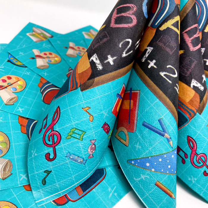 20 Servietten Schultüte ABC Schulanfang Einschulung Blau Rot Gelb