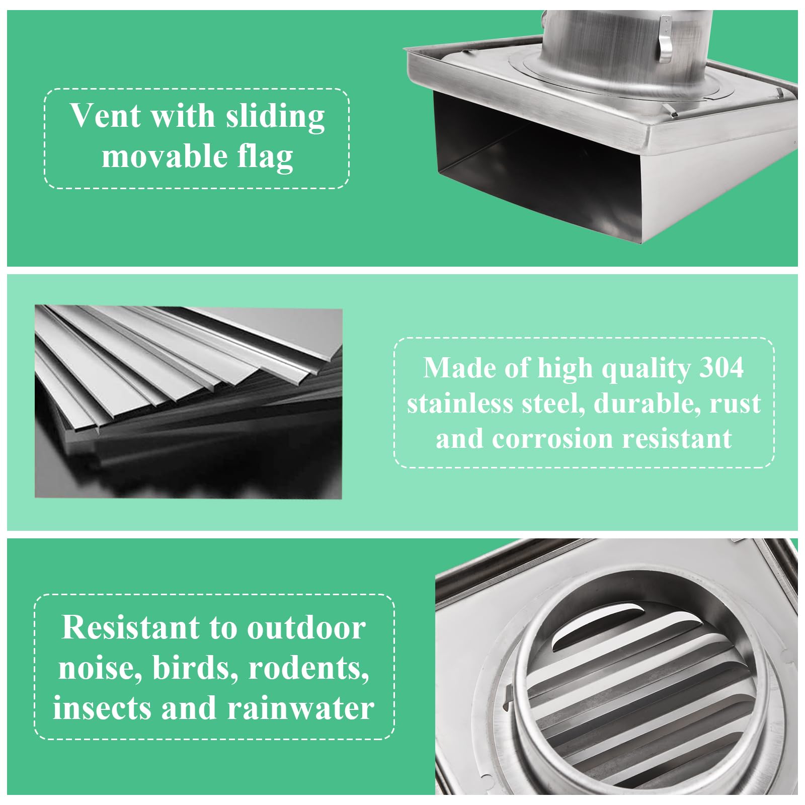 Der eingebaute Bildschirm isoliert Tiere und Schmutz vom Eindringen und bietet Ihnen ein besseres, gesünderes Leben. Unsere Produkte sind von hoher Qualität und einfach zu montieren. Installierte die Lamh -Kühlergrillabdeckung an der Außenwand, um die Luftzirkulation in den Innenräumen aufrechtzuerhalten, und installiert in der Luftauslass des Korridors, um Platz zu sparen. Ideal für Raumauspuff und Belüftung. Perfekt für Badezimmer, Küche, Büro, Garagen, Schuppen, Camper, AC, RV, Range Hood Extractoren. ABLUFTHAUBE LÜFTUNGSGITTER LUFTHAUBE Wetterschutzgitter Lamellengitter Edelstahl EUR 7,73 Witterungsbeständige Ablufthaube aus Edelstahl mit Lochgitter – ideal für Außenwände. Schützt vor Fremdkörpern & Feuchtigkeit. Langlebig & korrosionsfrei Wir vereinfachen Architektur, weil Architektur in der Natur des Menschen liegt. 2 x Schrauben. Robustes Schutzgitter – Das extra dicke, verstärkte Gitter hält Insekten, Nagetiere und Schmutz effektiv ab und sorgt gleichzeitig für einen optimalen Luftstrom. Material: Edelstahl 304 An der Rohrverbindung befinden sich 3 Befestigungsschnallen, die die Dichtheit einstellen und die Rolle der Verstärkung und Absturzsicherung spielen können. Installationsdiagramm Schritt 1: Messen Sie die Öffnungsgröße und wählen Sie die Haube in der entsprechenden Größe aus Der zweite Schritt: Platzieren Sie die Position der Abdeckung und markieren Sie die Position des Schraubanschlusses mit einem Marker am Schraubanschluss Schritt 3: Verwenden Sie eine elektrische Bohrmaschine, um die Schraubenlöcher an den markierten Stellen zu öffnen Schritt 4: Befestigen Sie die Edelstahlabdeckung und schrauben Sie die Schraubenlöcher fest Die Installation ist abgeschlossen! Wir bieten Lösungen, die komfortabel, minimalistisch und ästhetisch ansprechend sind. Für die Installation werden Handschuhe empfohlen. 【Hausverbesserung】 Die externe Wandentlüftung eignet sich perfekt für Lüftungssysteme. Sicherheit hat keine Angst davor, sich in die Hände zu schneiden Die Kanten sind sorgfältig poliert, gratfrei abgerundet und haben keine Angst, sich in die Hände zu schneiden. QWEASDF Edelstahl Ablufthaube Lüftungsgitter mit Insektenschutzgitter Wetterschutzgitter Hinweis: Bitte beachten Sie, dass die Kanten scharf sind, das Produkt mit Vorsicht verarbeiten. Durch die Vereinfachung jeder Phase können wir die nahtlose Installation vereinfachen. Wir vereinfachen das Bauen und tragen zu einem gesunden Raumklima bei